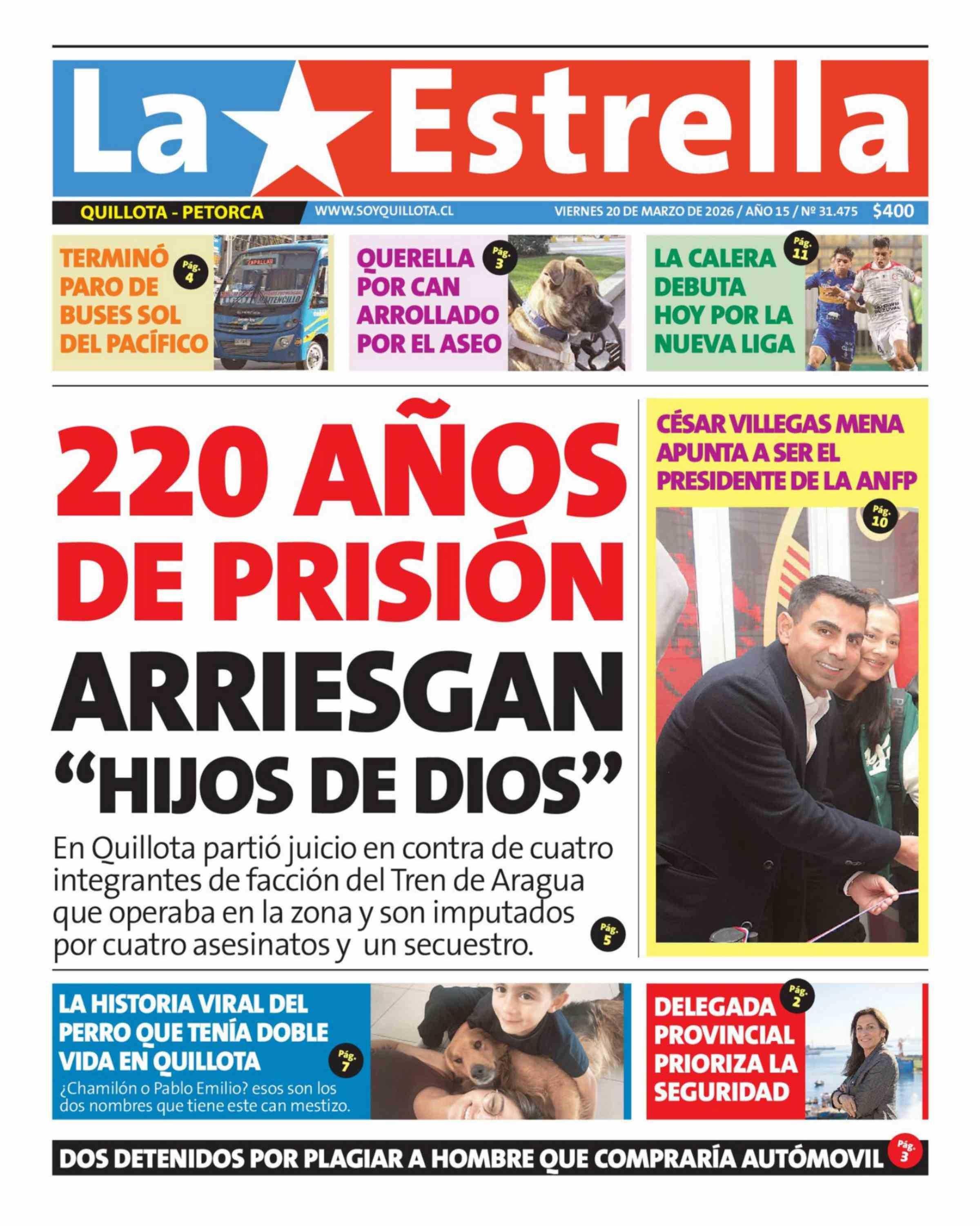 PORTADA LA ESTRELLA DE QUILLOTA CHILE
