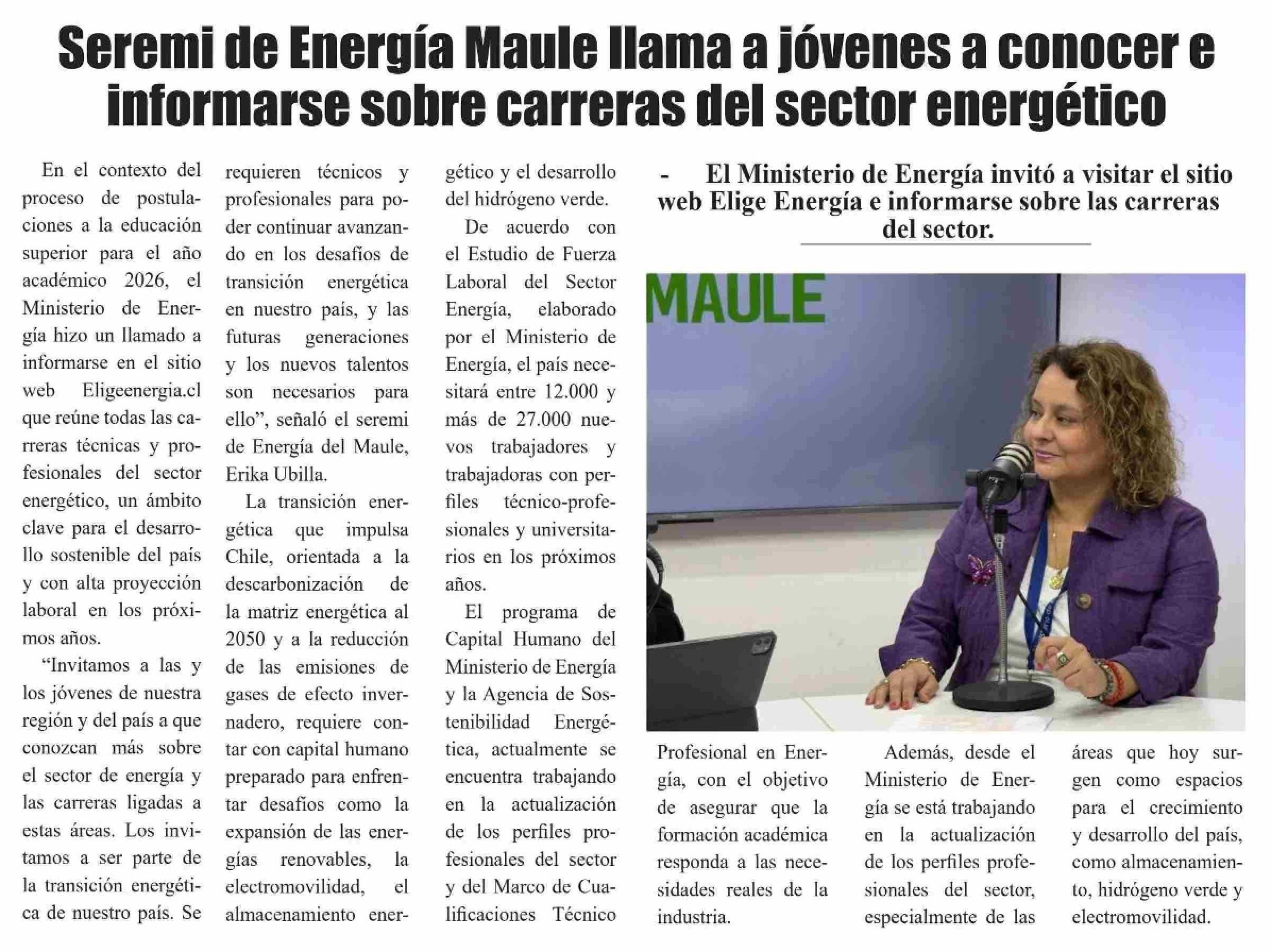 Seremi de Energía Maule llama a jóvenes a conocer e informarse sobre carreras del sector energético
