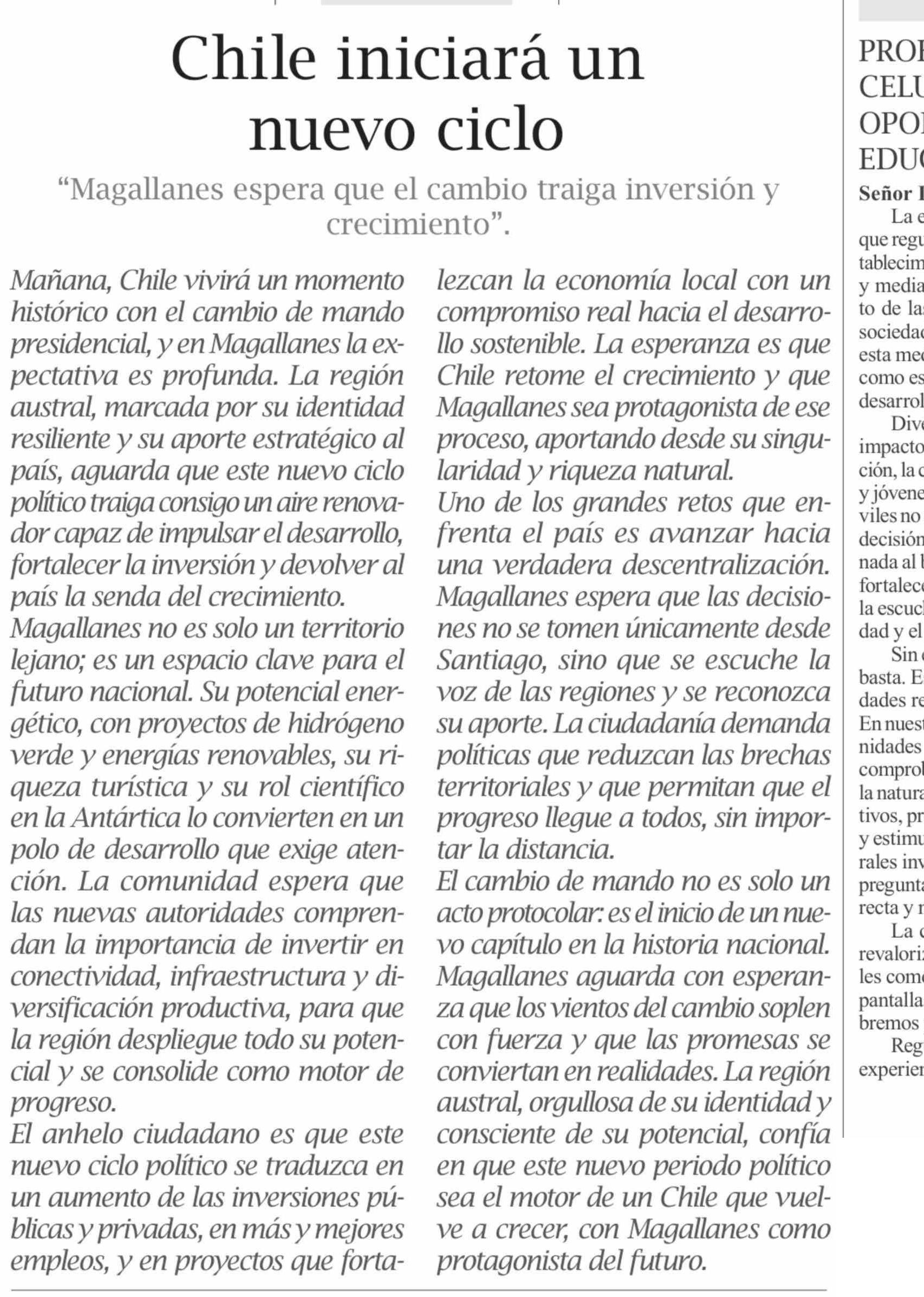 EDITORIAL: Chile iniciará un nuevo ciclo