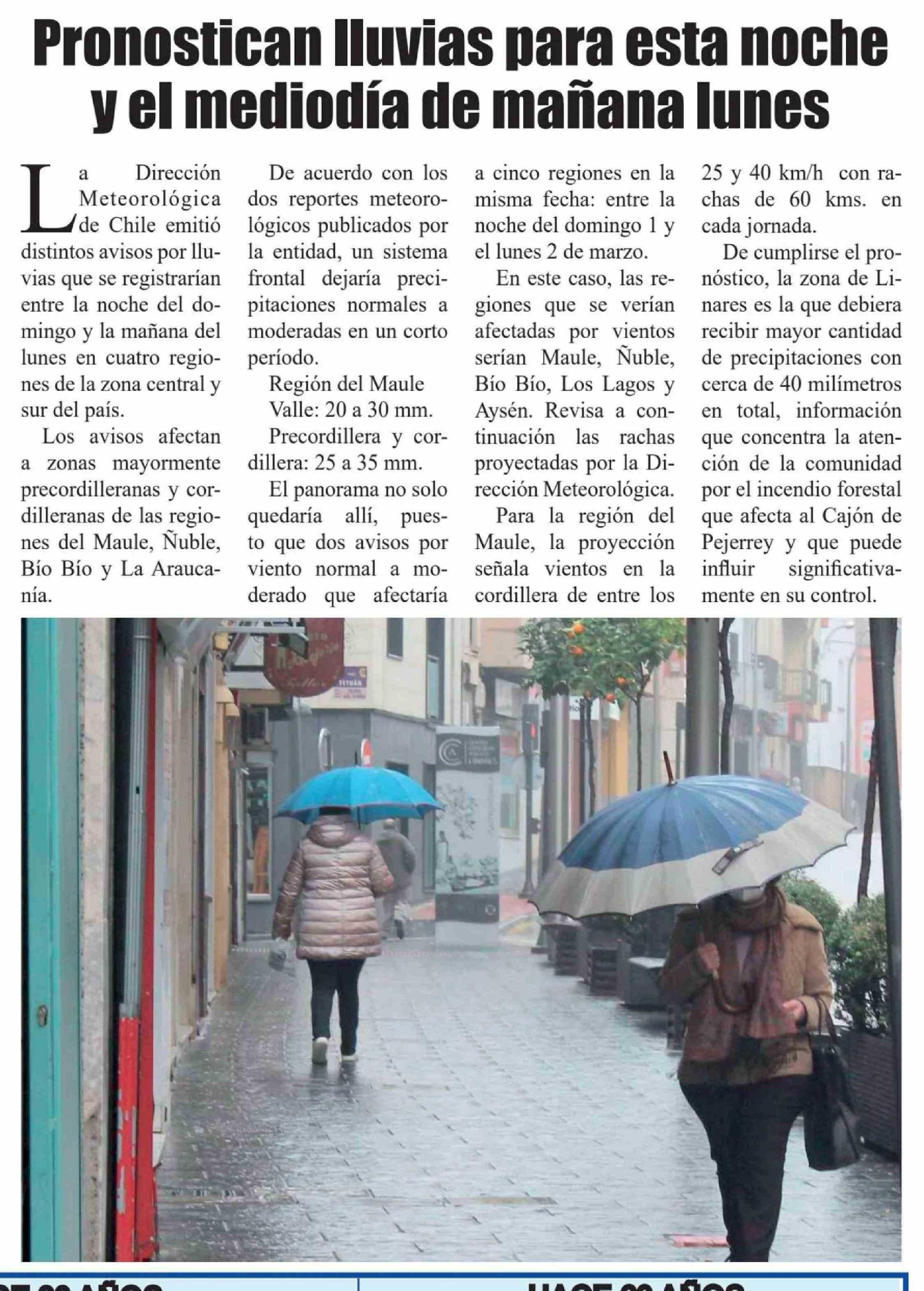 Pronostican lluvias para esta noche y el mediodía de mañana lunes