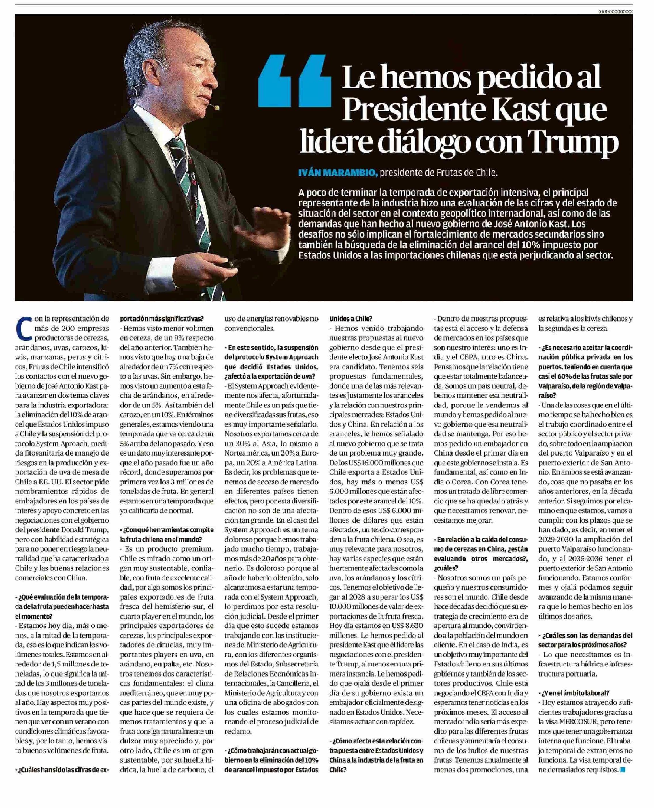 Le hemos pedido al Presidente Kast que lidere diálogo con Trump