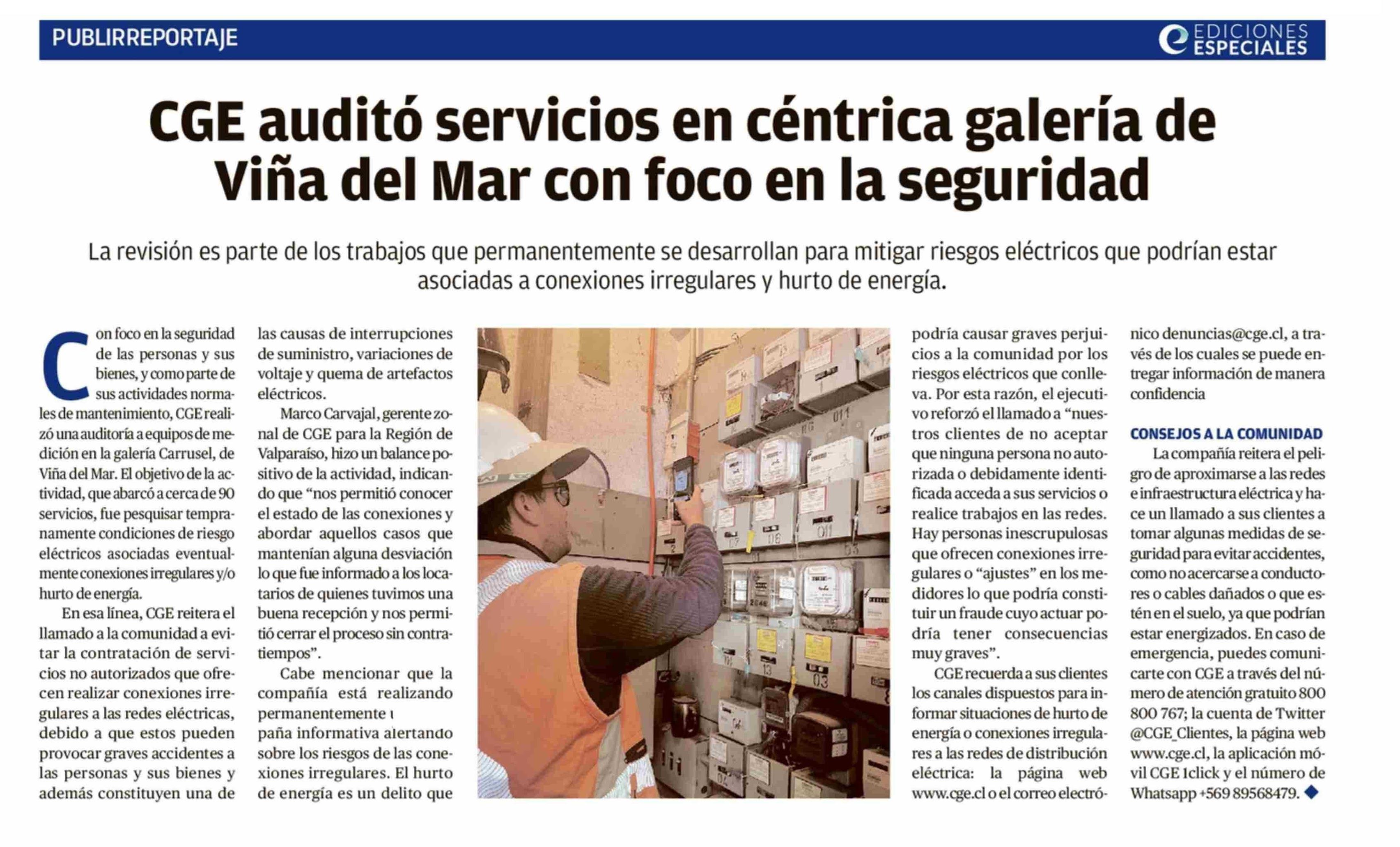 CGE auditó servicios en céntrica galería de Viña del Mar con foco en la seguridad