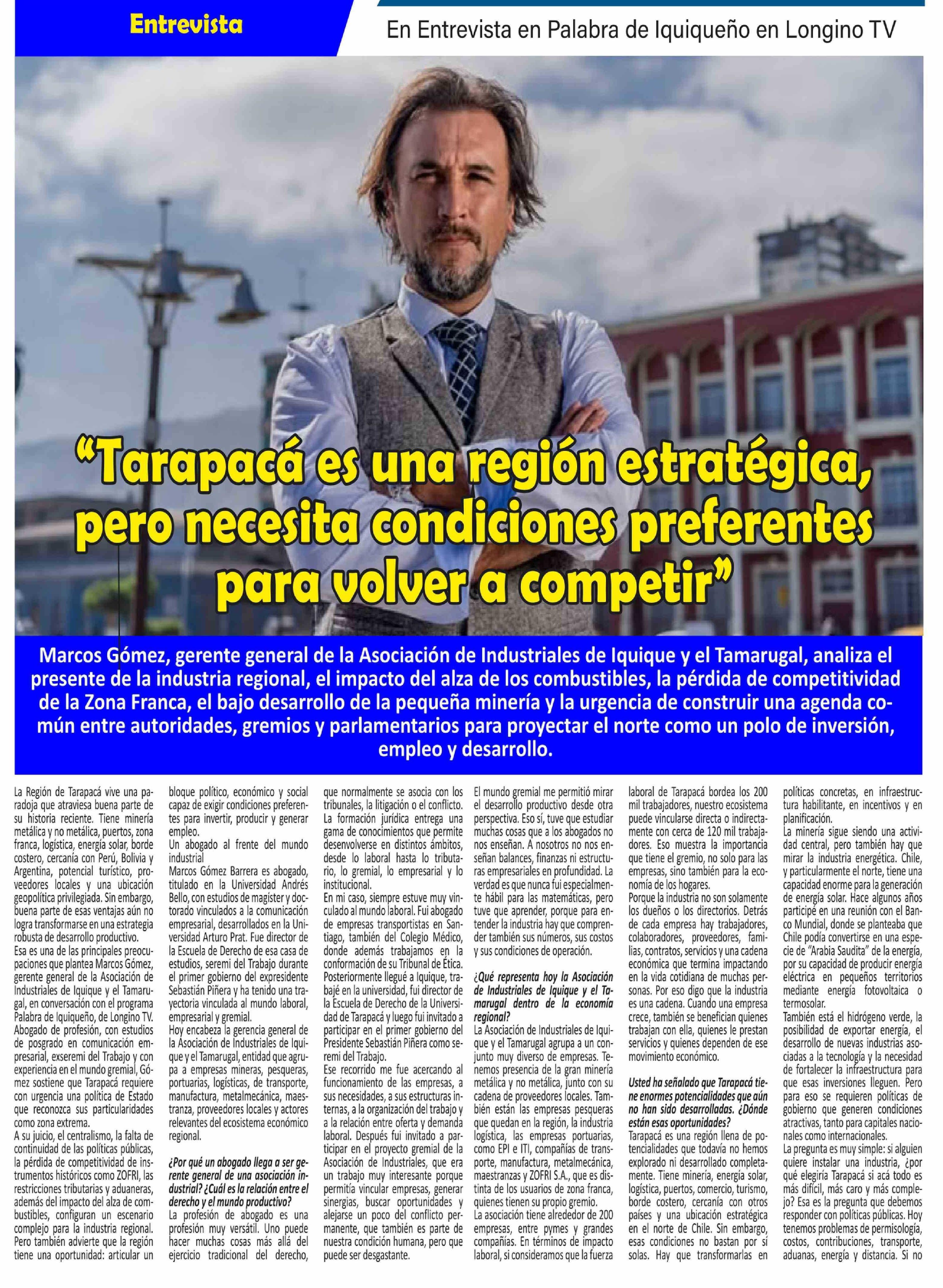 "Tarapacá es una región estratégica, pero necesita condiciones preferentes para volver a competir"