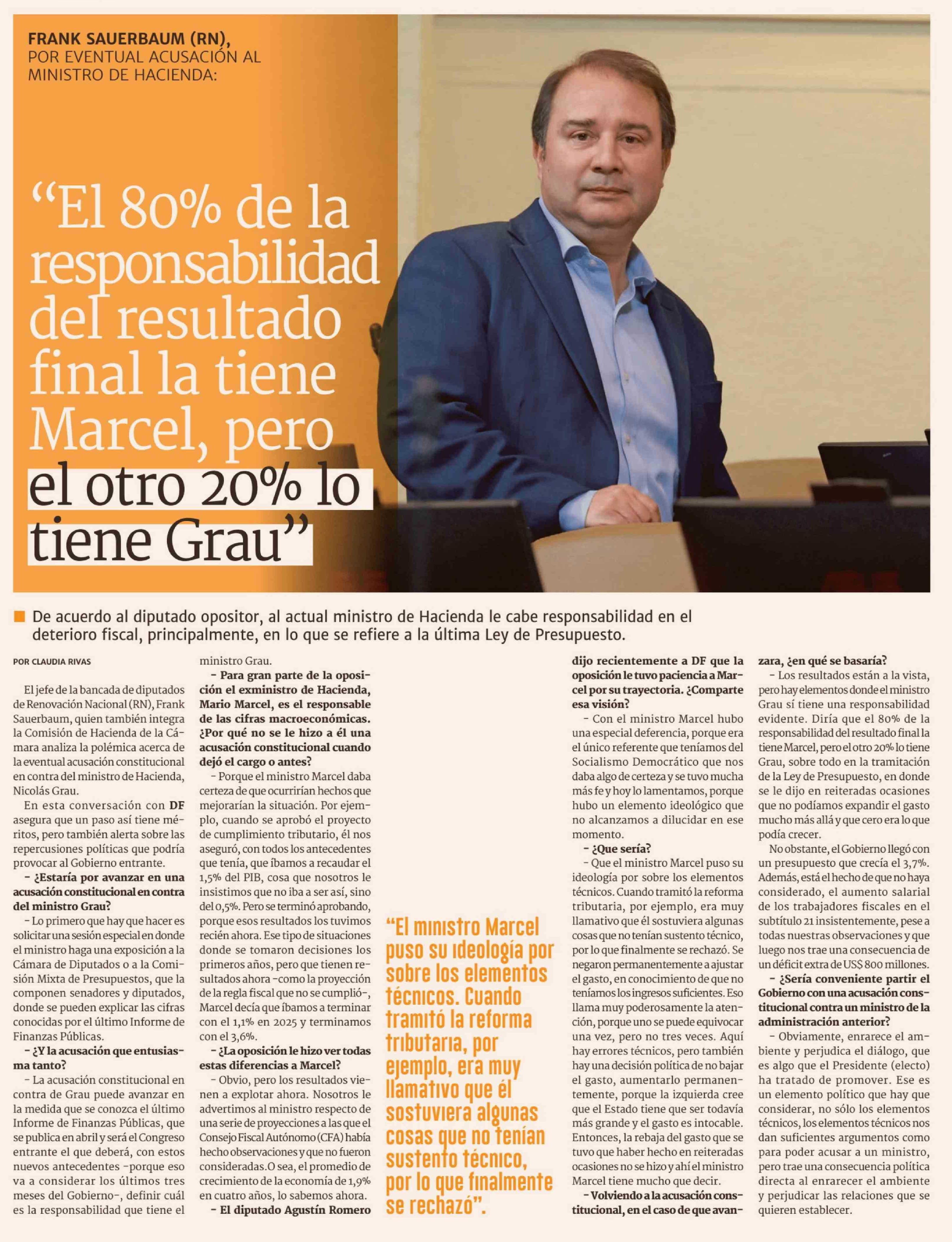 "El 80% de la responsabilidad del resultado final la tiene Marcel, pero el otro 20% lo tiene Grau'