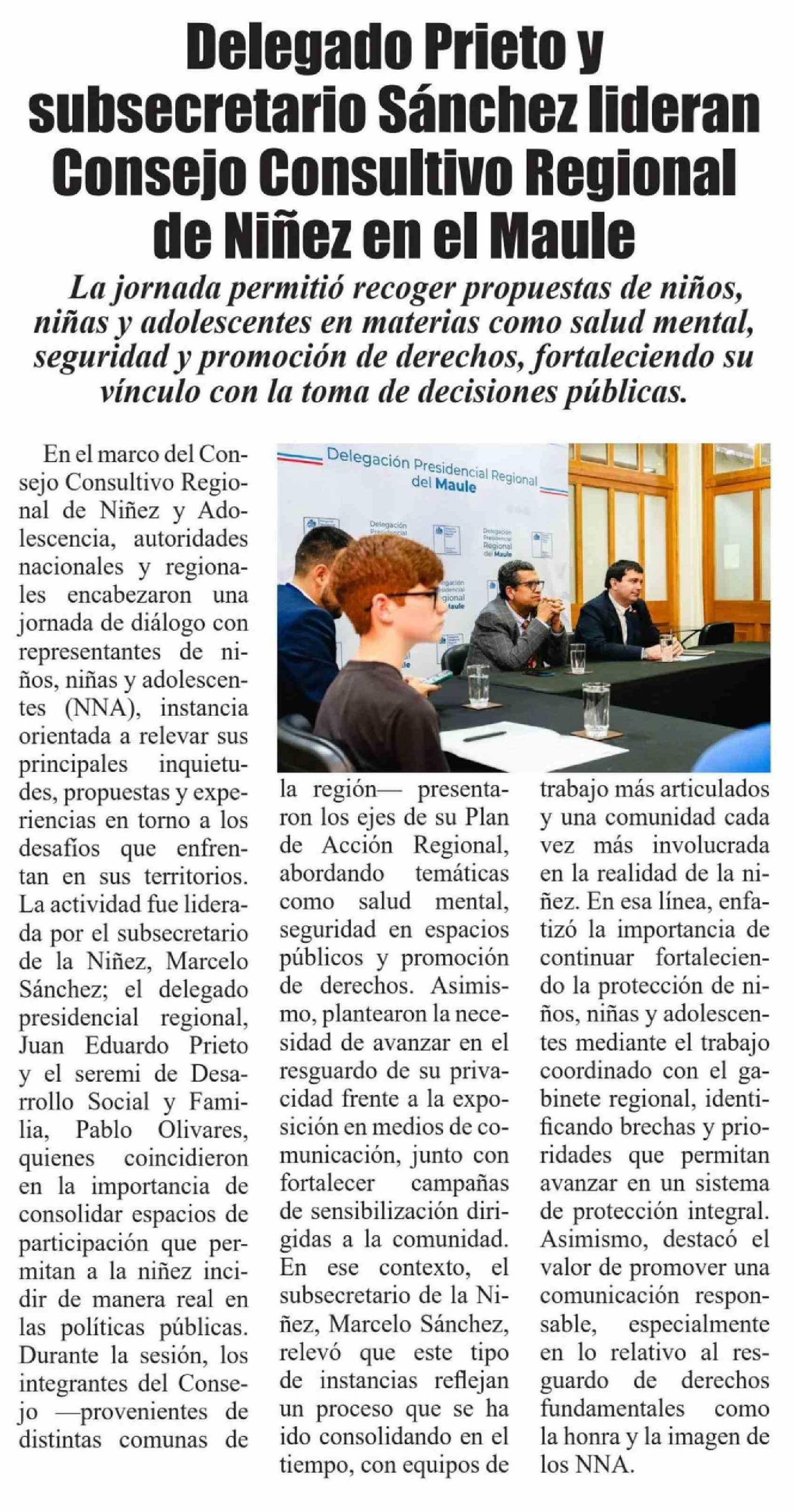 Delegado Prieto y subsecretario Sánchez lideran Consejo Consultivo Regional de Niñez en el Maule