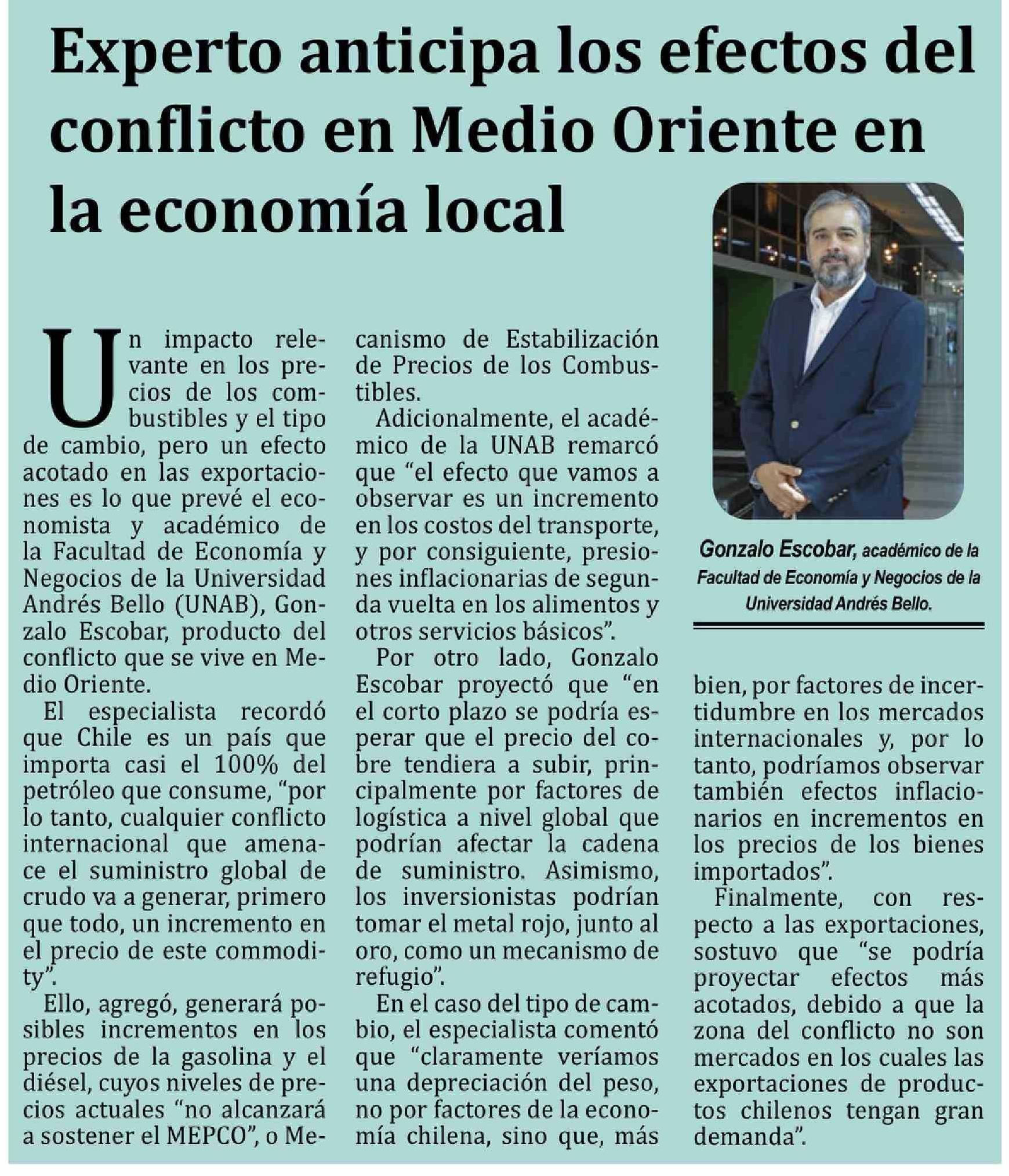 Título: Columnas de Opinión: Experto anticipa los efectos del conflicto en Medio Oriente en la economía local