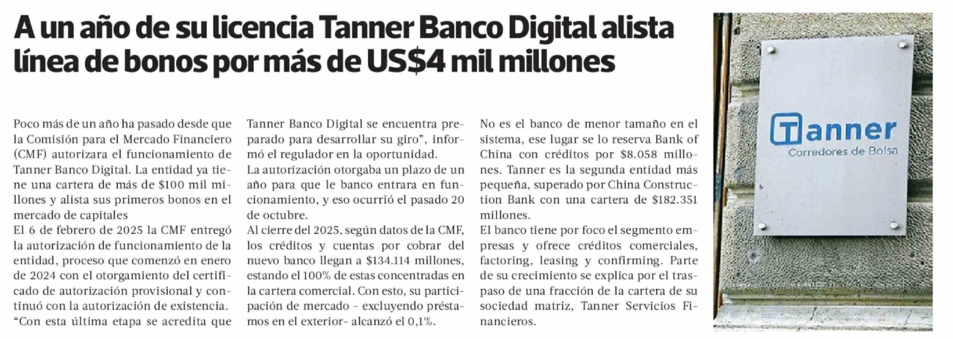 A un año de su licencia Tanner Banco Digital alista línea de bonos por más de US$4 mil millones