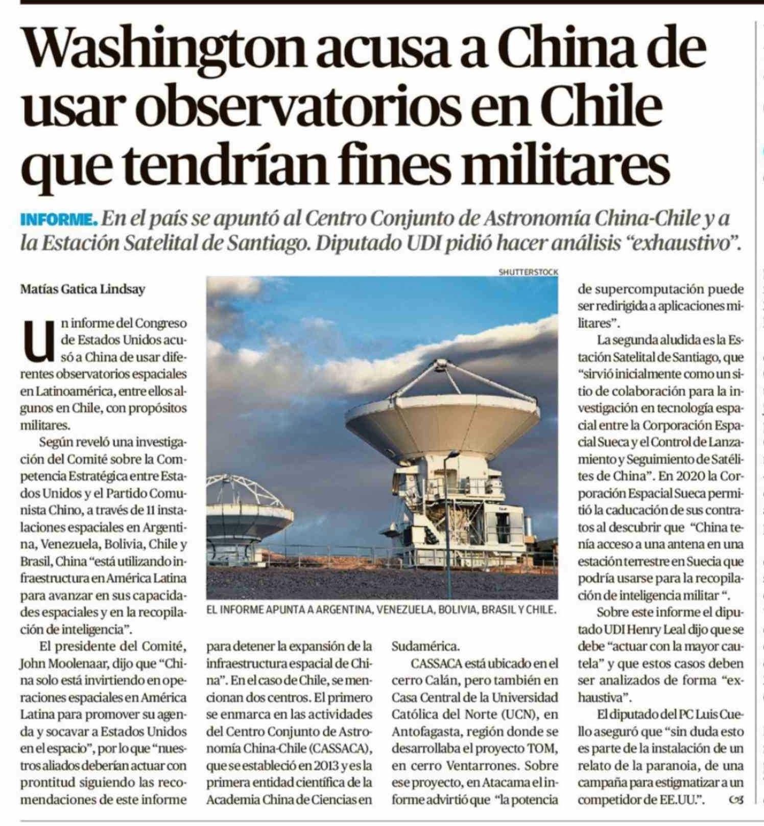 Washington acusa a China de usar observatorios en Chile que tendrían fines militares