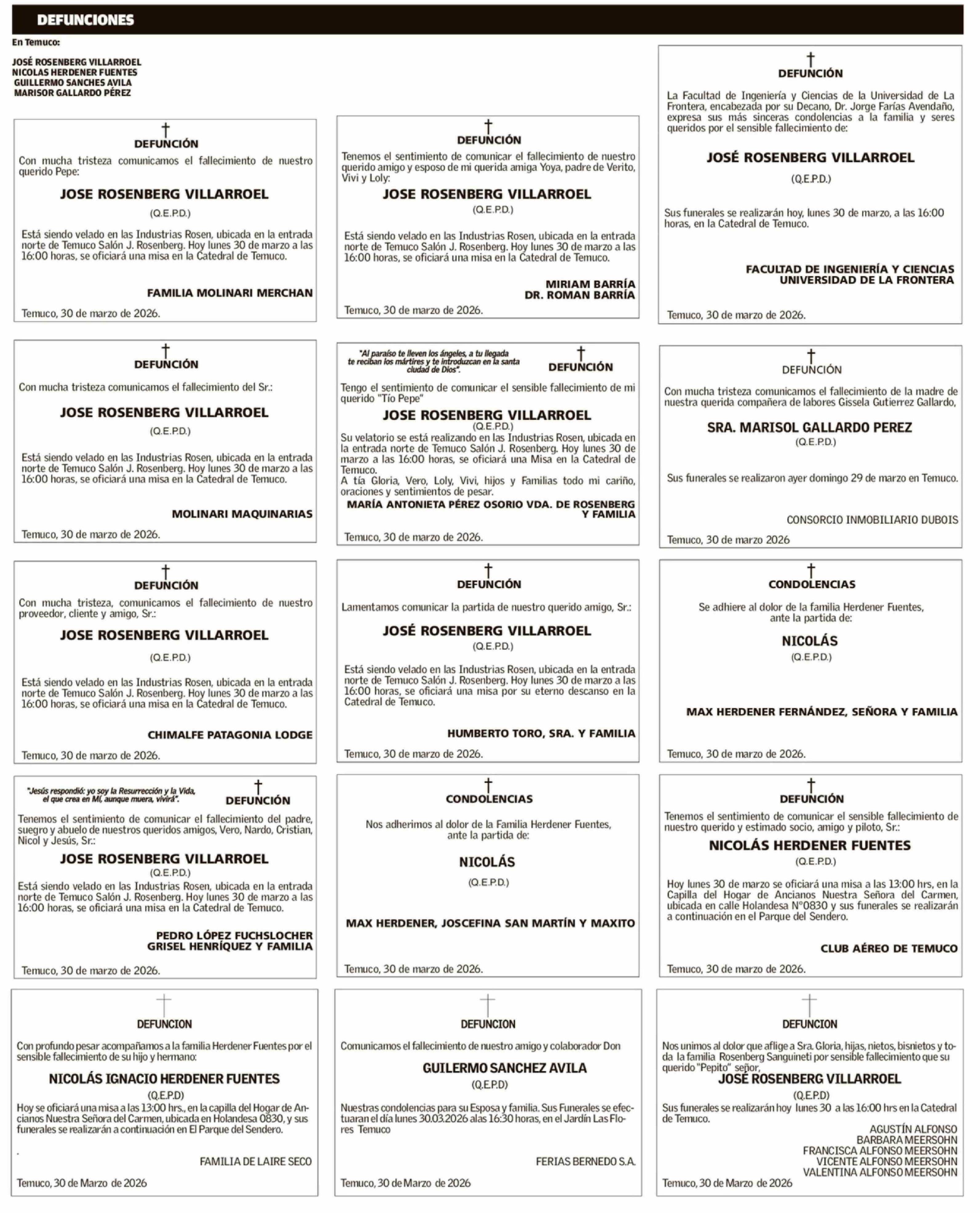 Obituario: DEFUNCIONES