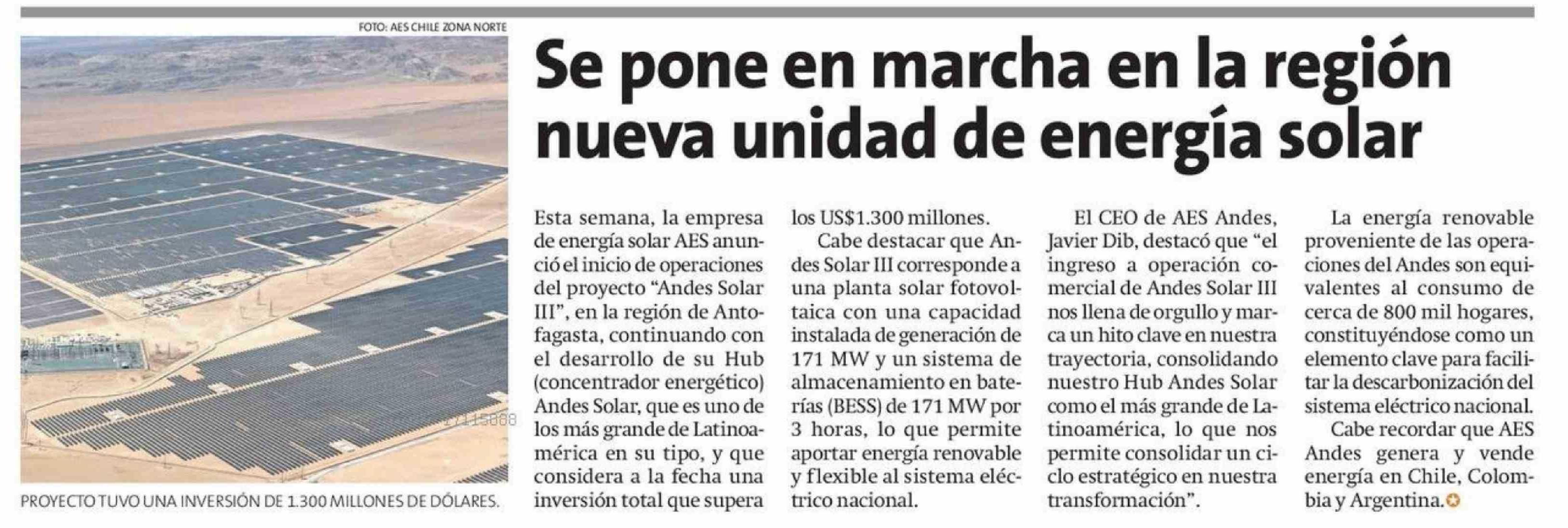 Se pone en marcha en la región nueva unidad de energía solar