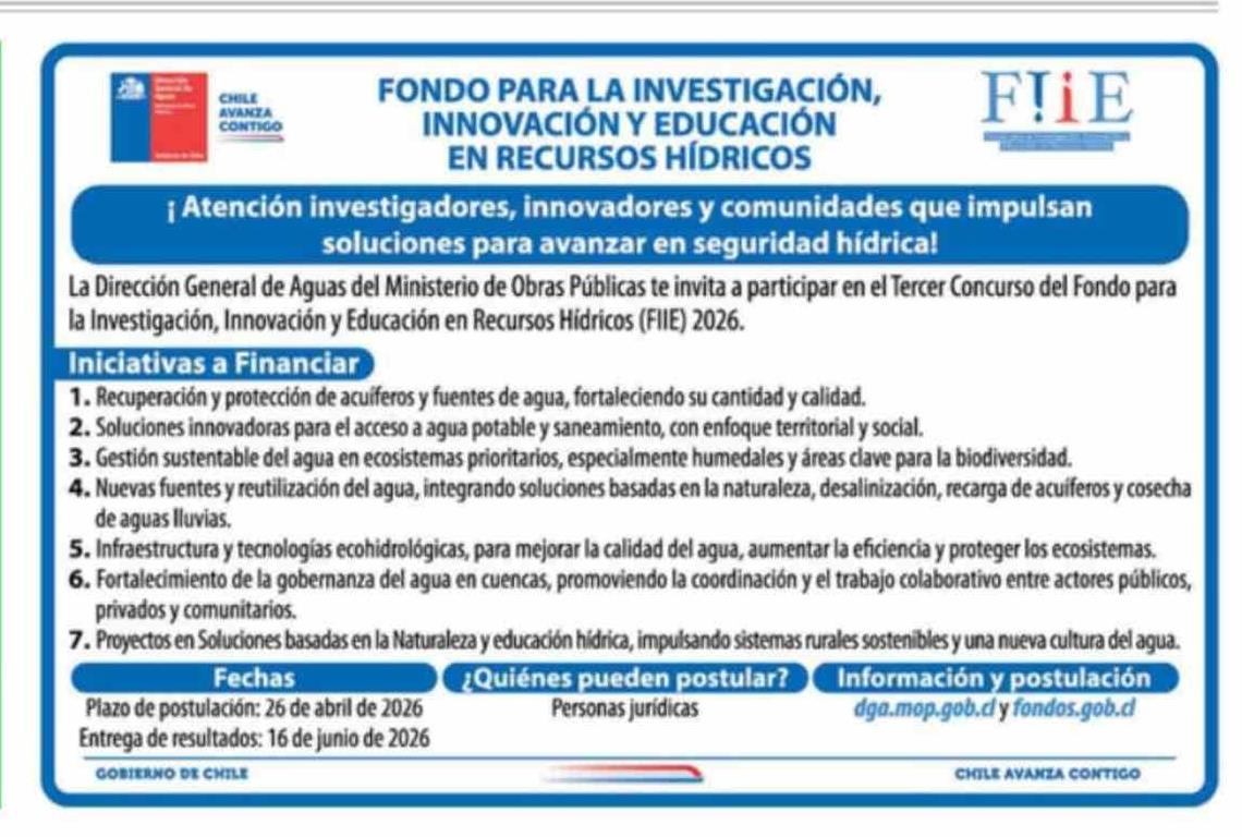Aviso Licitaciones:FONDO PARA LA INVESTIGACIÓN, INNOVACIÓN Y EDUCACIÓN EN RECURSOS HÍDRICOS
