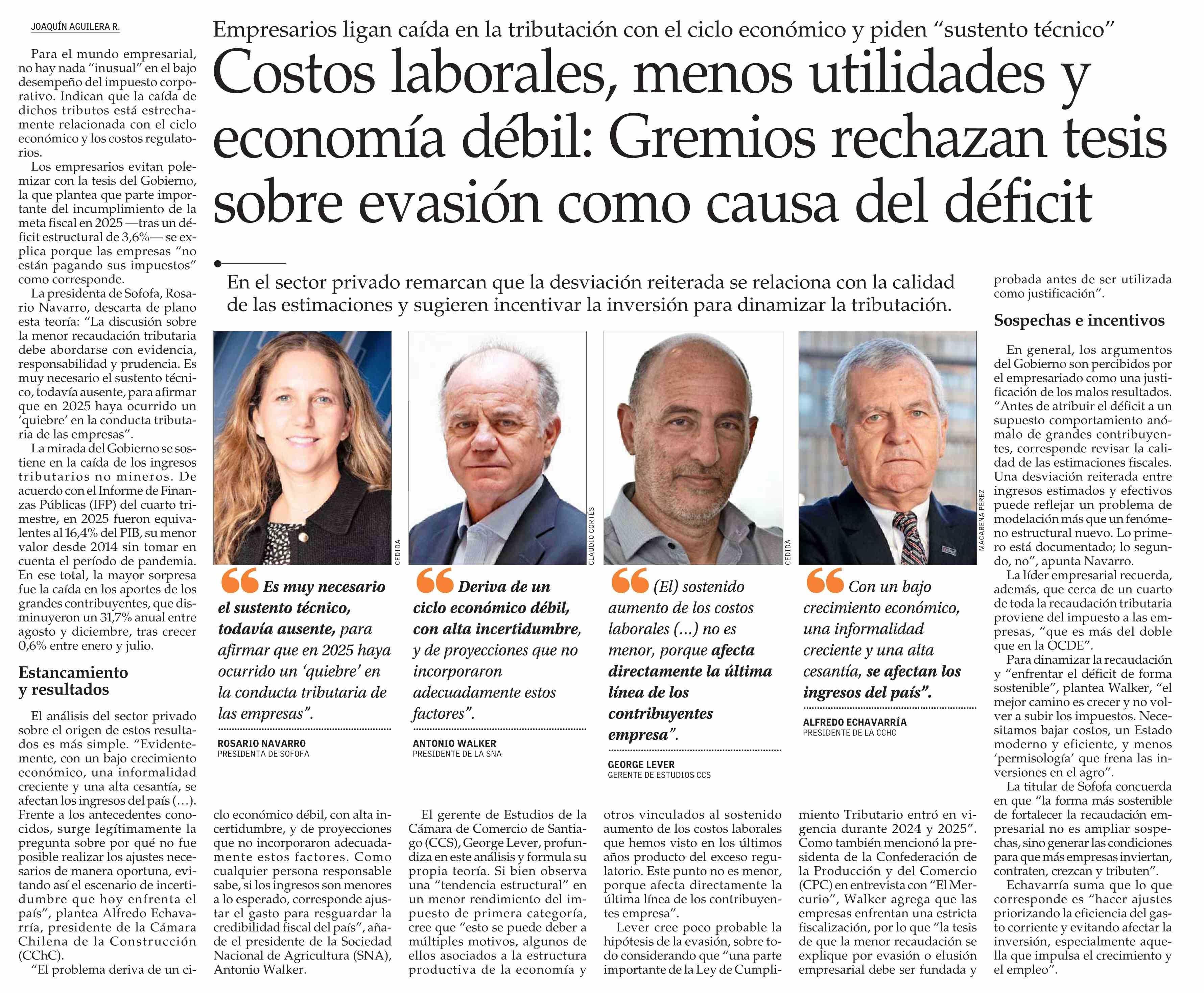 Costos laborales, menos utilidades y economía débil: Gremios rechazan tesis sobre evasión como causa del déficit