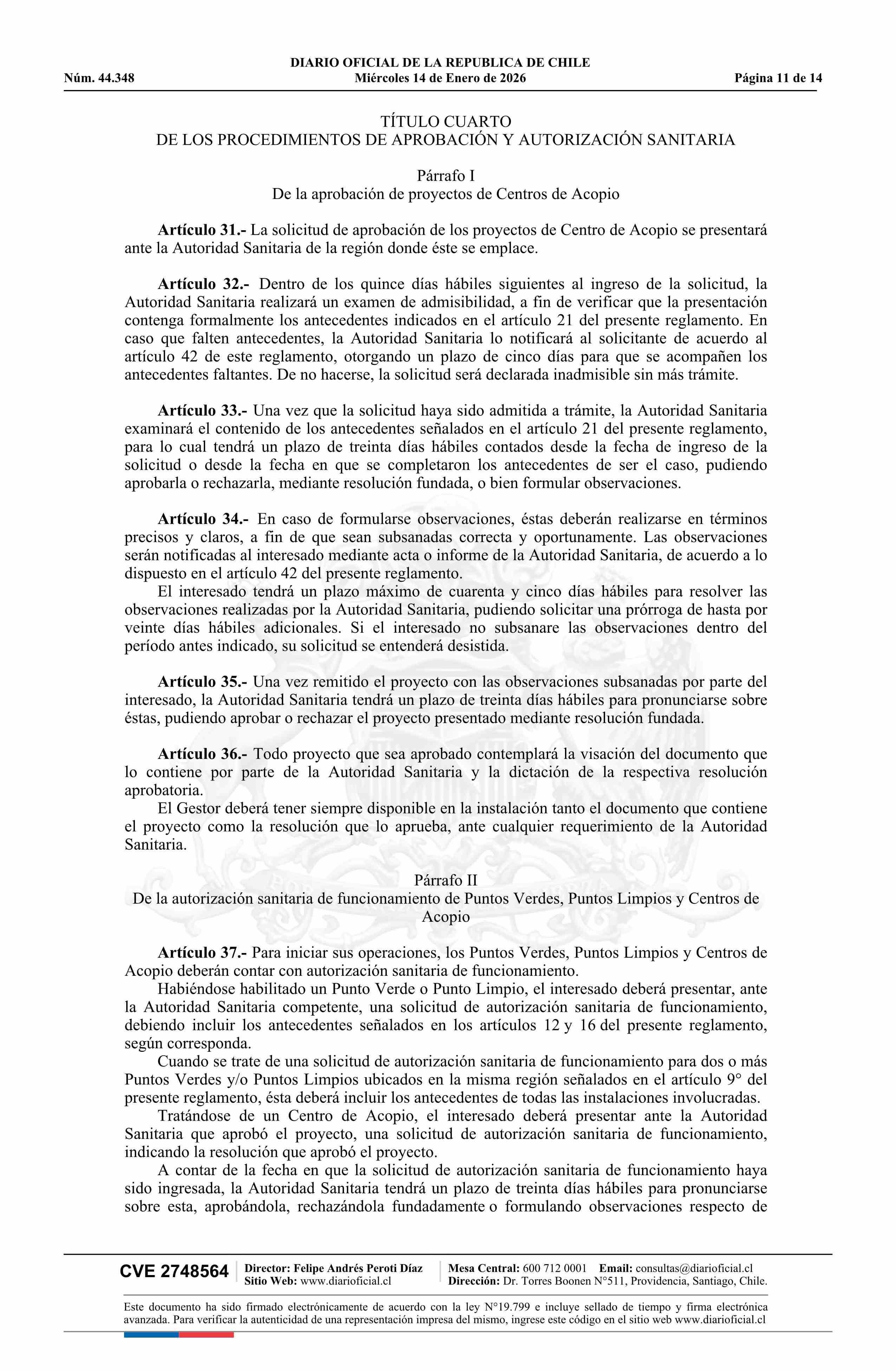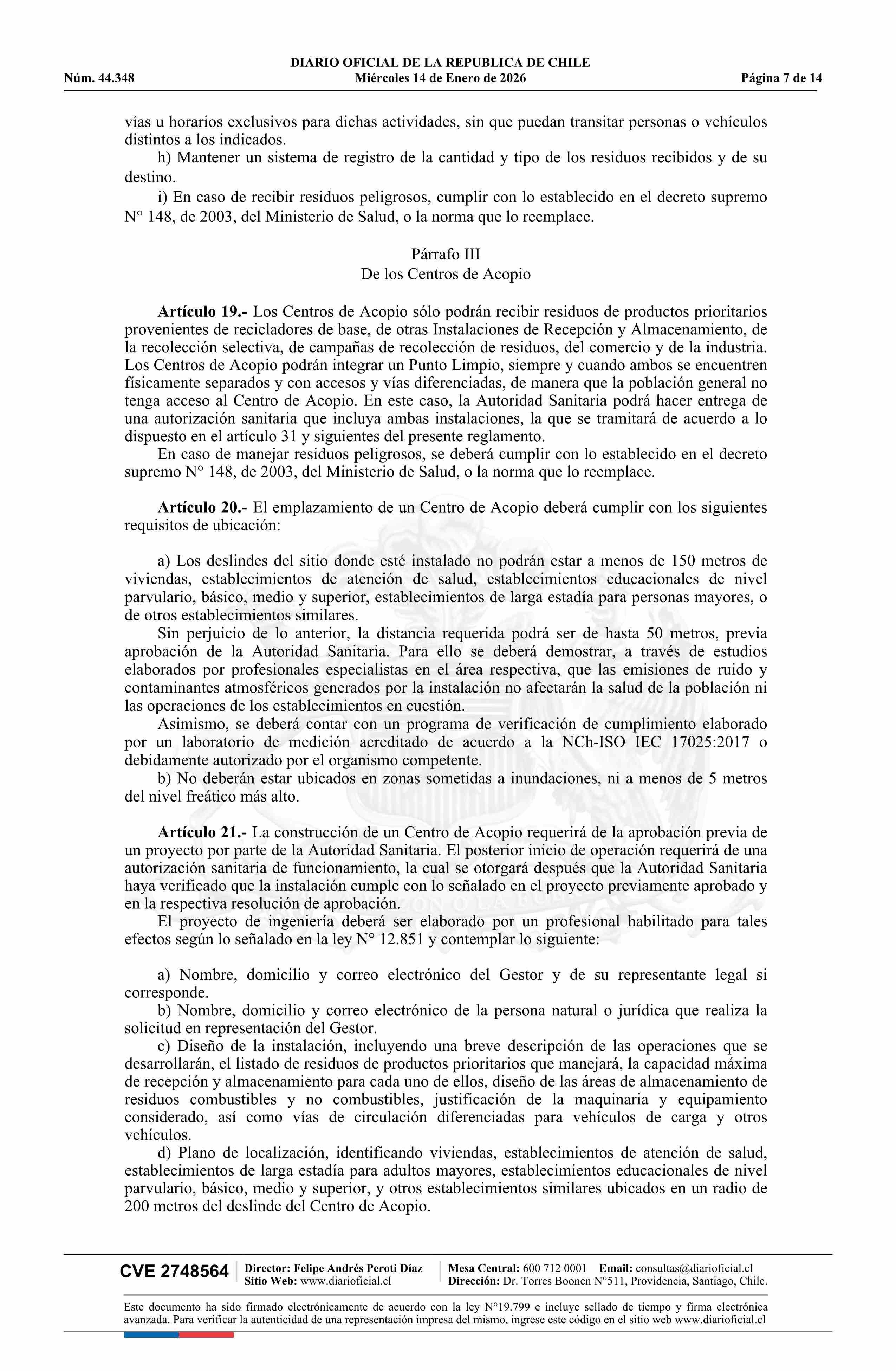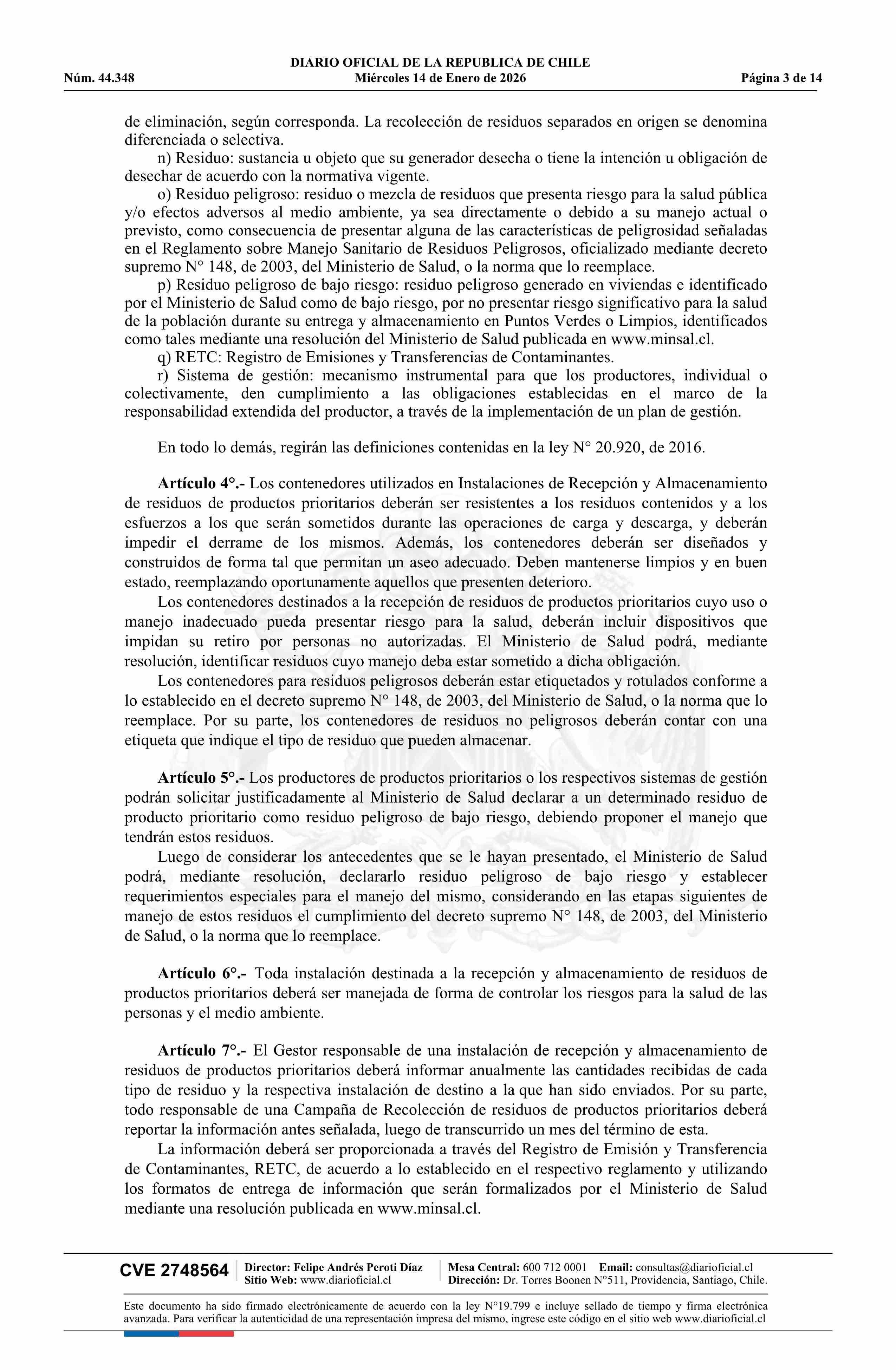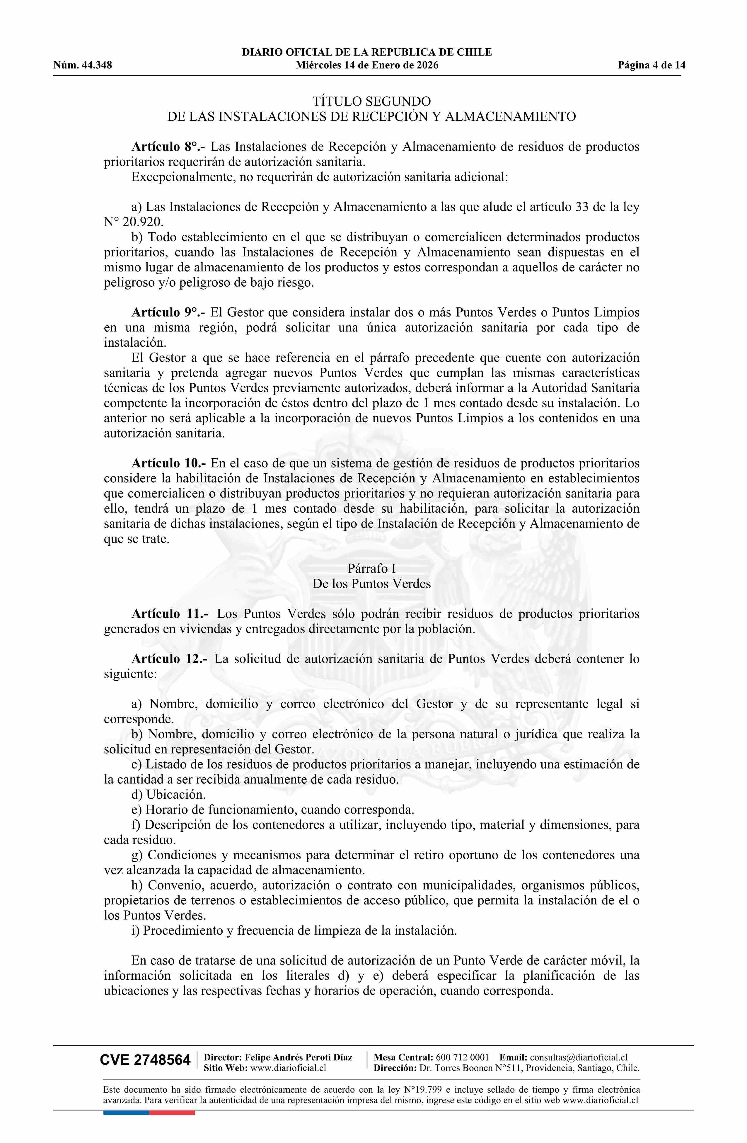 | Título: | Decreto número 29, de 2024.- Aprueba Reglamento Sanitario sobre Labores de Recepción y Almacenamiento de Residuos de Productos Prioritarios |