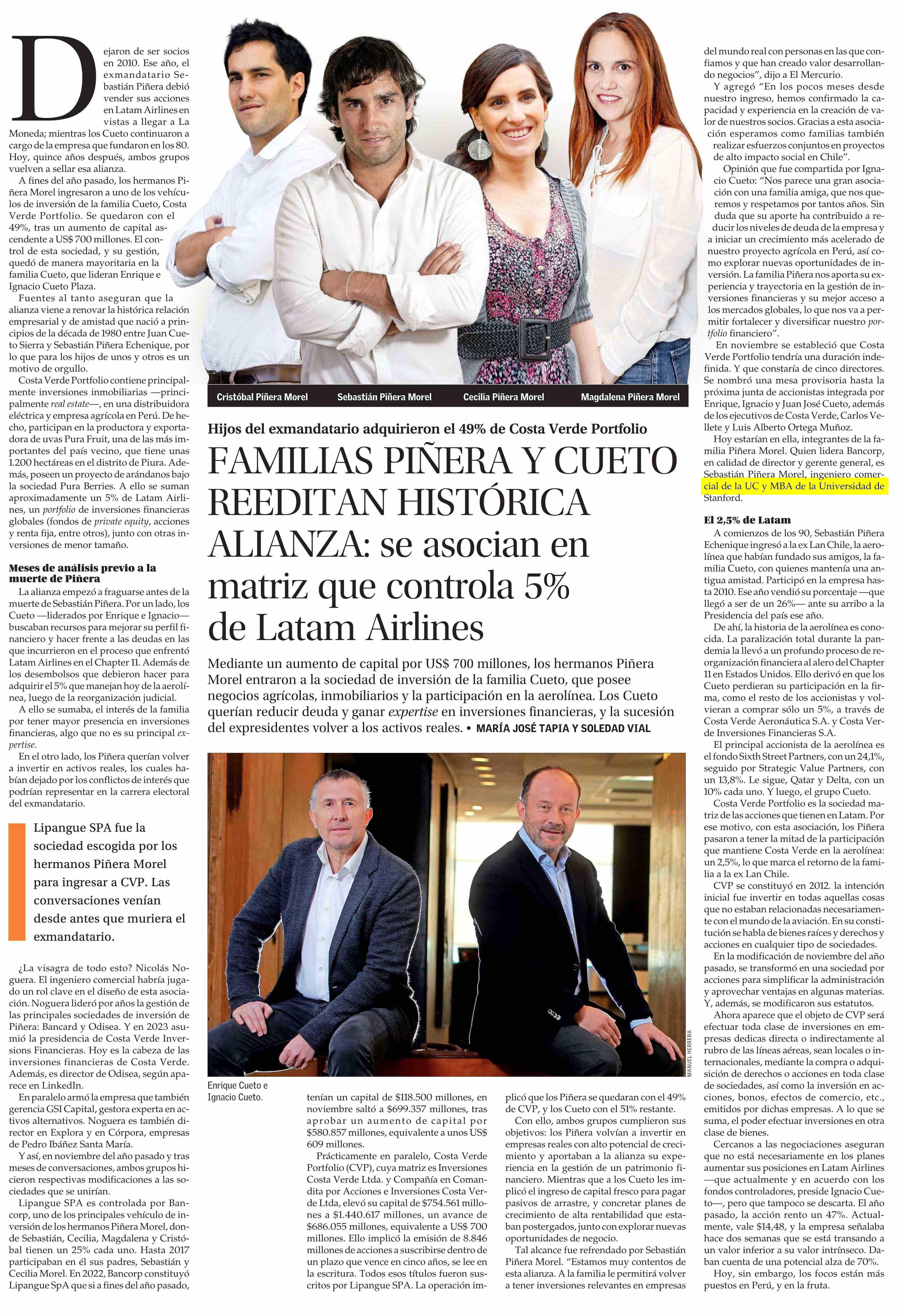 FAMILIAS PIÑERA Y CUETO REEDITAN HISTÓRICA ALIANZA: se asocian en matriz que controla 5% de Latam Airlines
