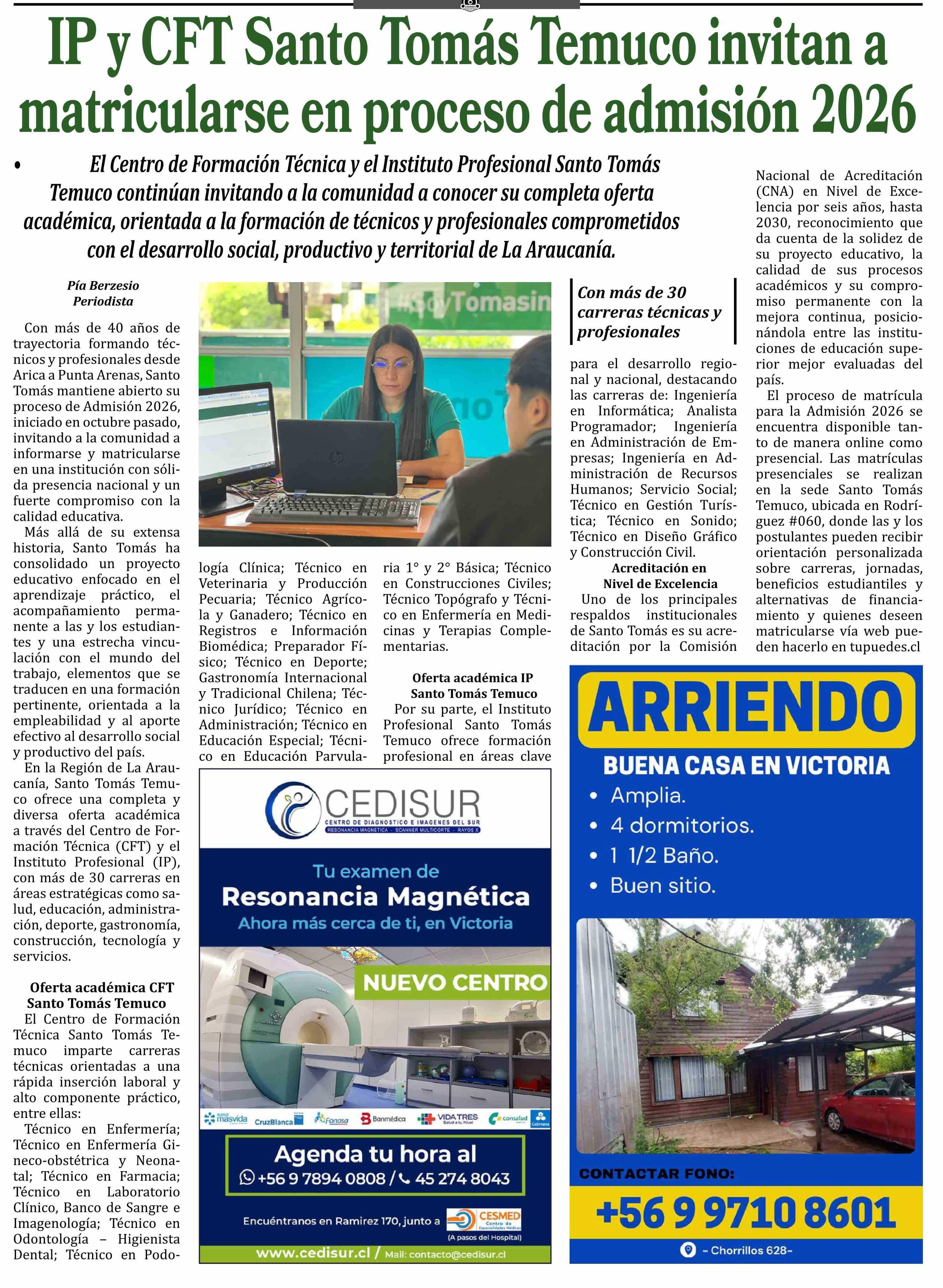 IP y CFT Santo Tomás Temuco invitan a matricularse en proceso de admisión 2026