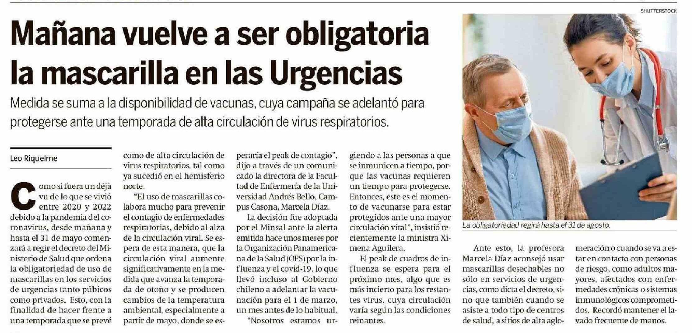 Mañana vuelve a ser obligatoria la mascarilla en las Urgencias