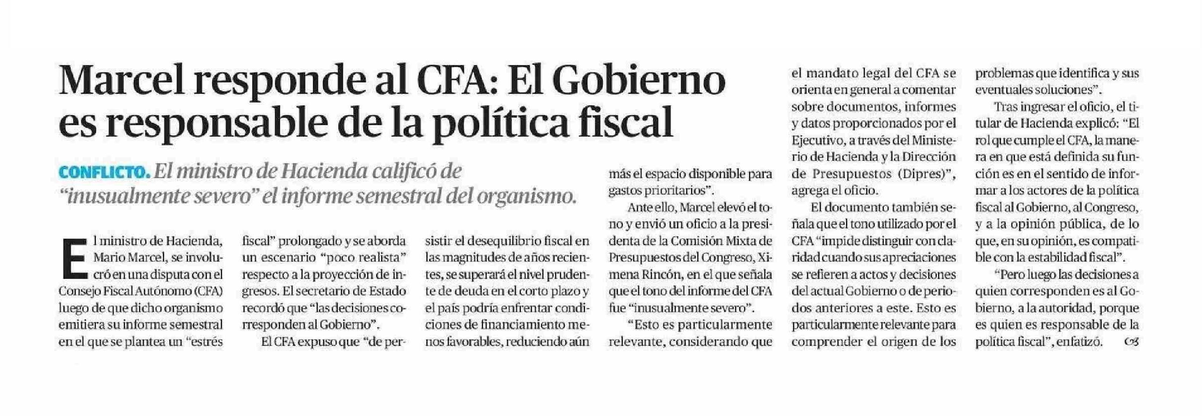 Marcel responde al CFA: El Gobierno es responsable de la política fiscal