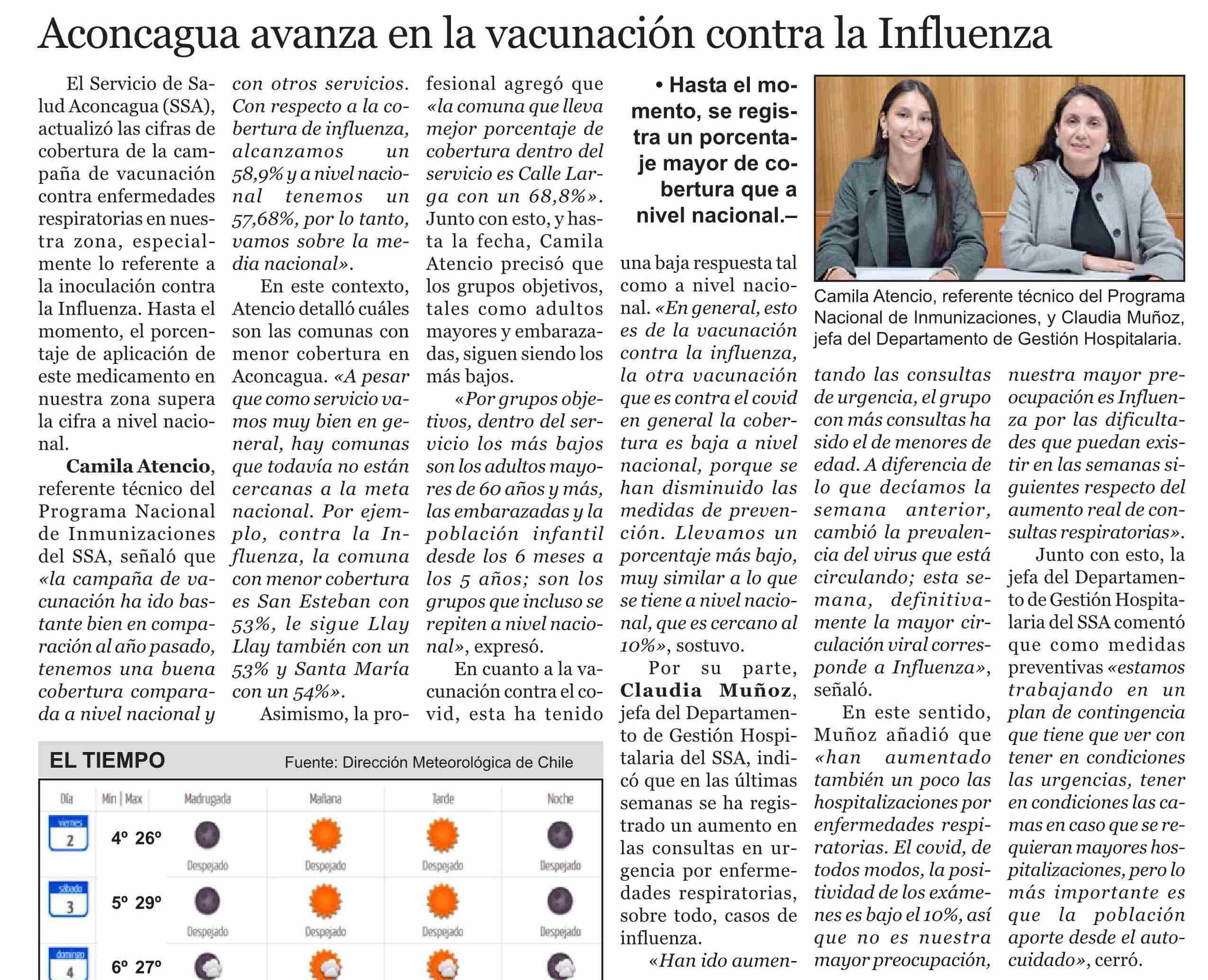 Aconcagua avanza en la vacunación contra la Influenza