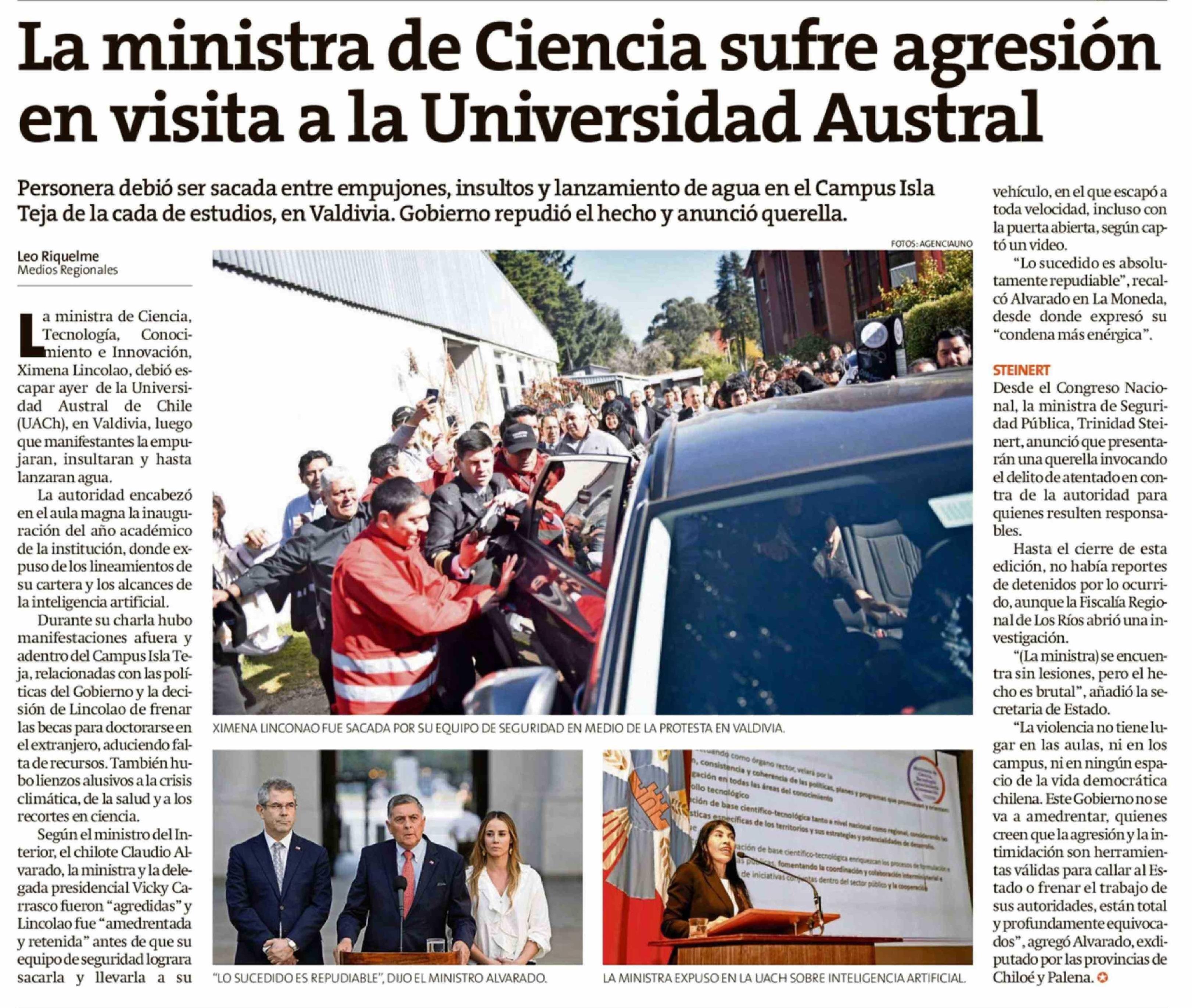 La ministra de Ciencia sufre agresión en visita a la Universidad Austral