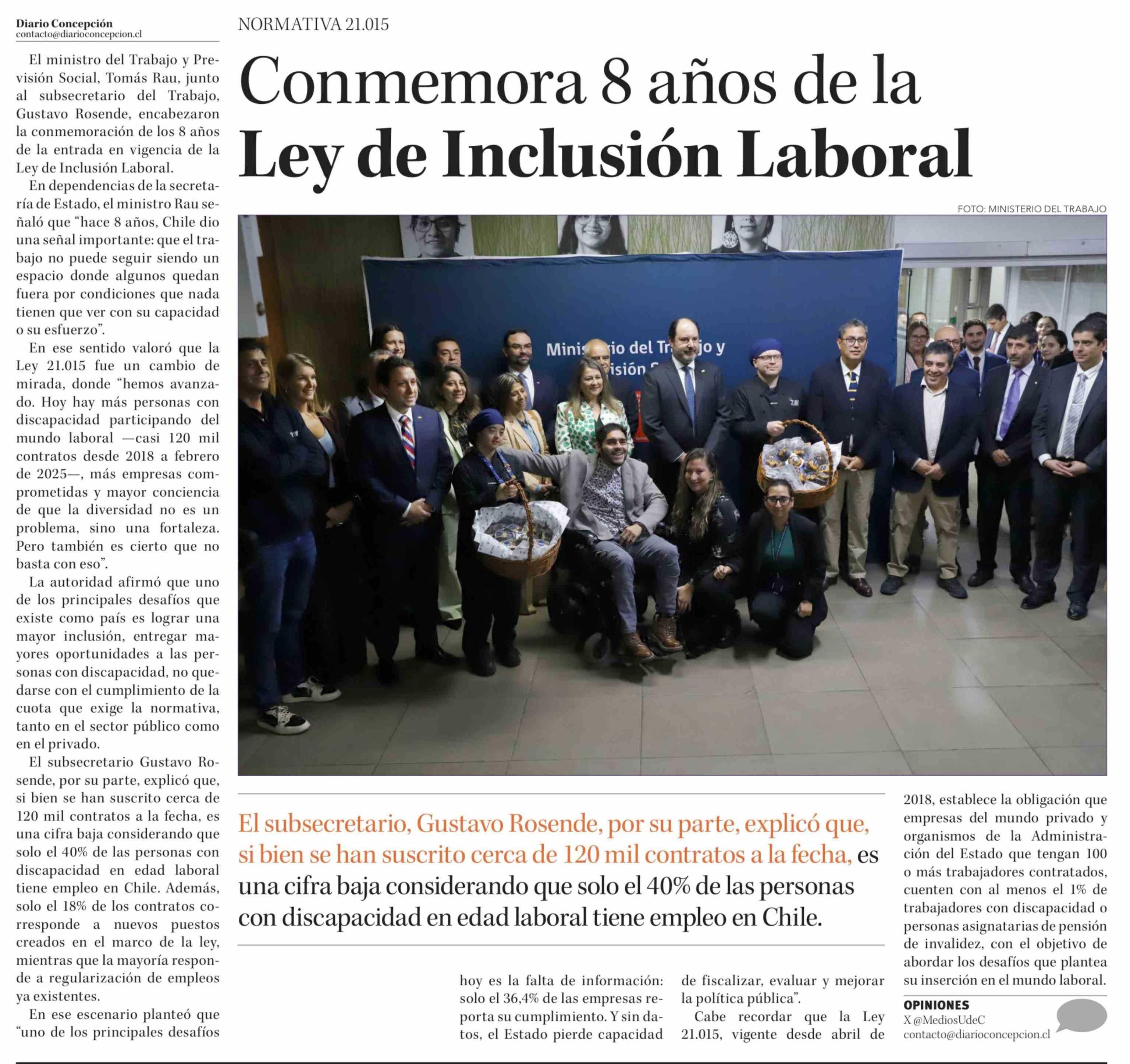 Conmemora 8 años de la Ley de Inclusión Laboral