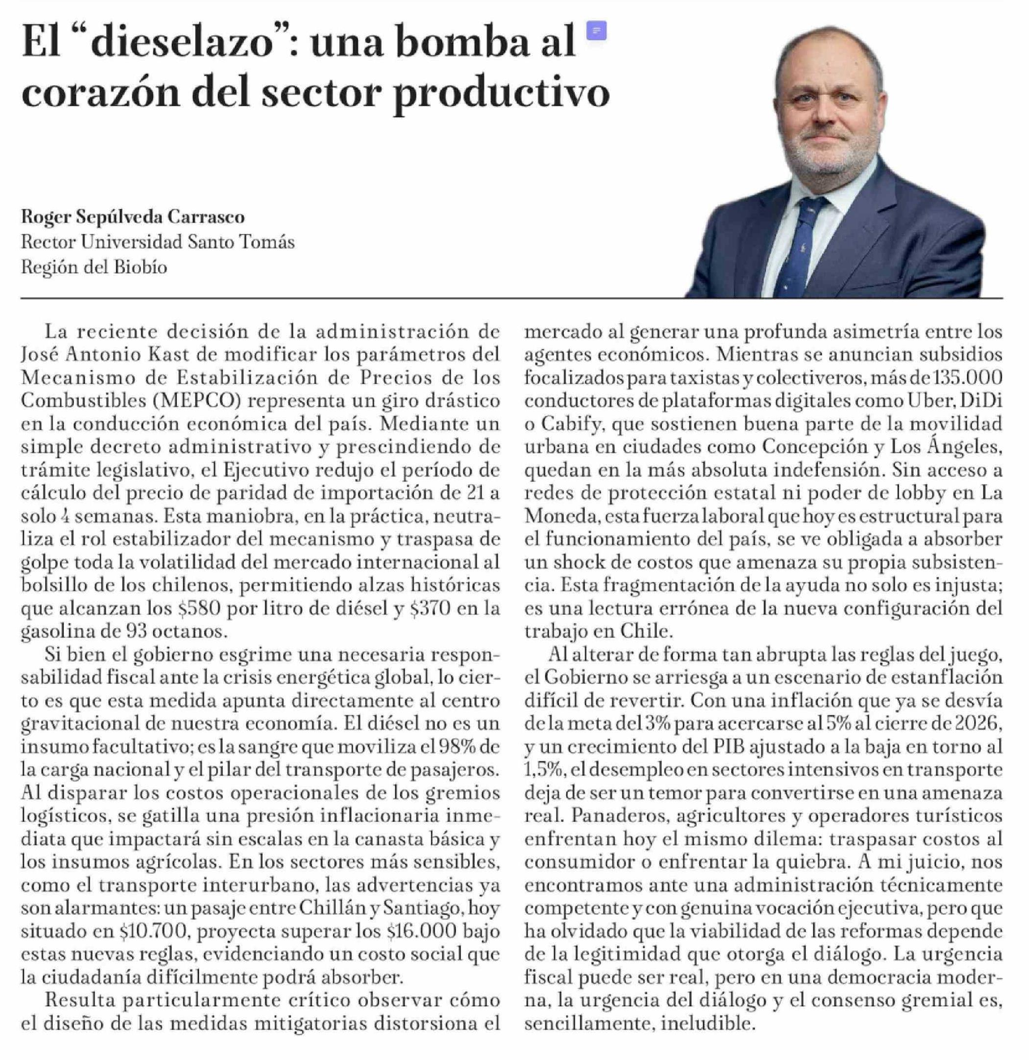 Columnas de Opinión: El "dieselazo": una bomba al corazón del sector productivo