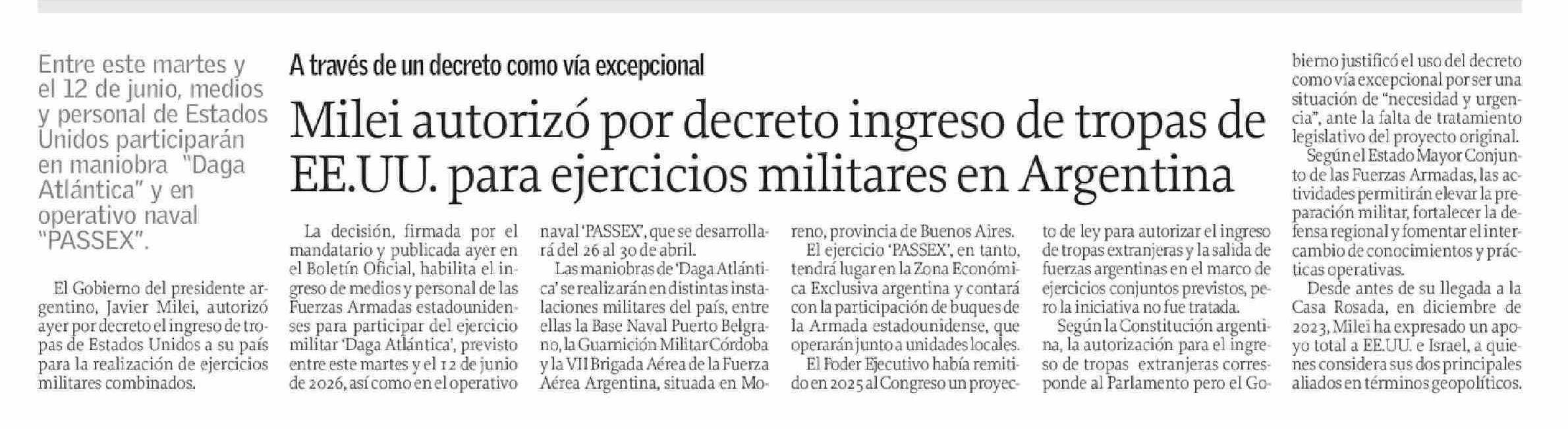 Milei autorizó por decreto ingreso de tropas de EE.UU. para ejercicios militares en Argentina