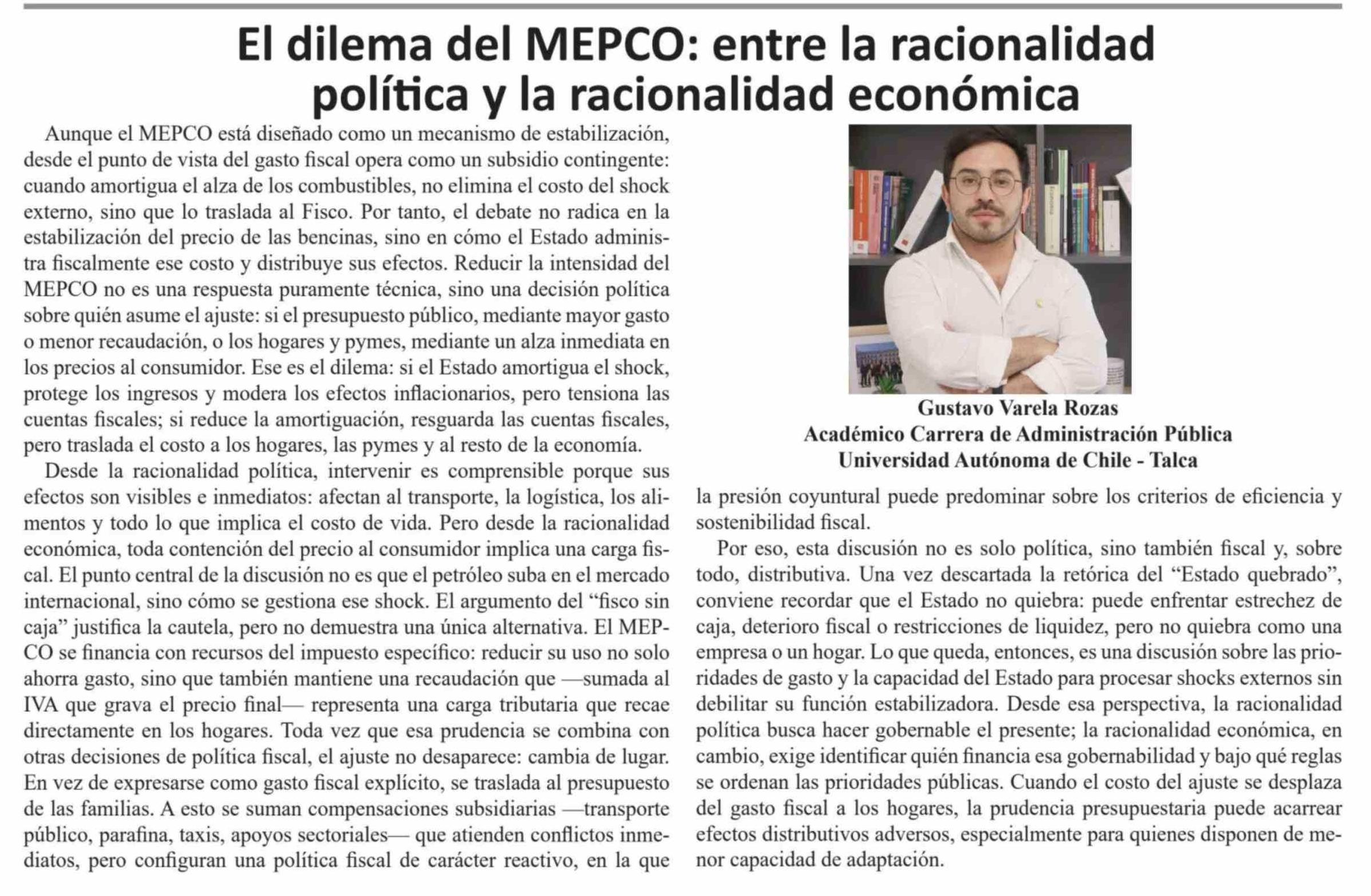 Columnas de Opinión: El dilema del MEPCO: entre la racionalidad política y la racionalidad económica
