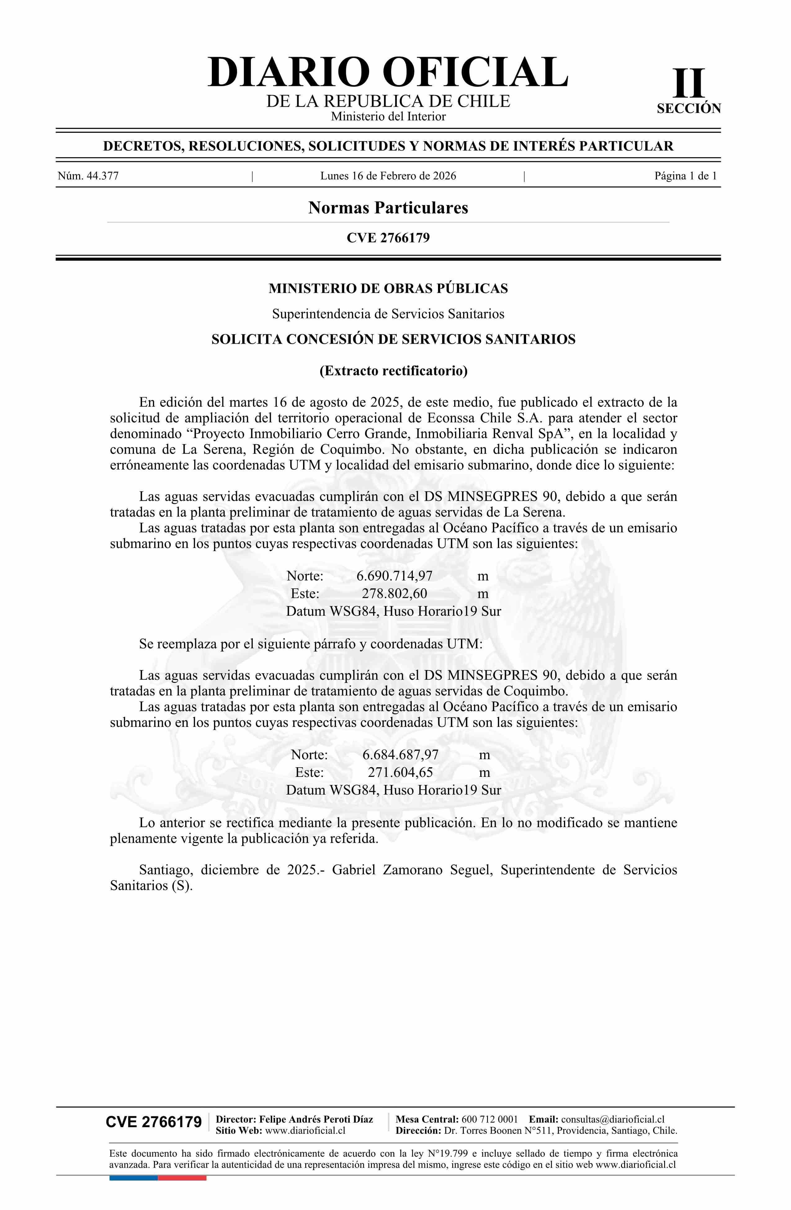 | Fuente: | Diario Oficial Edición Electrónica (Diario Oficial de Chile - 2 Normas Particulares) | Página(s): | 133 |