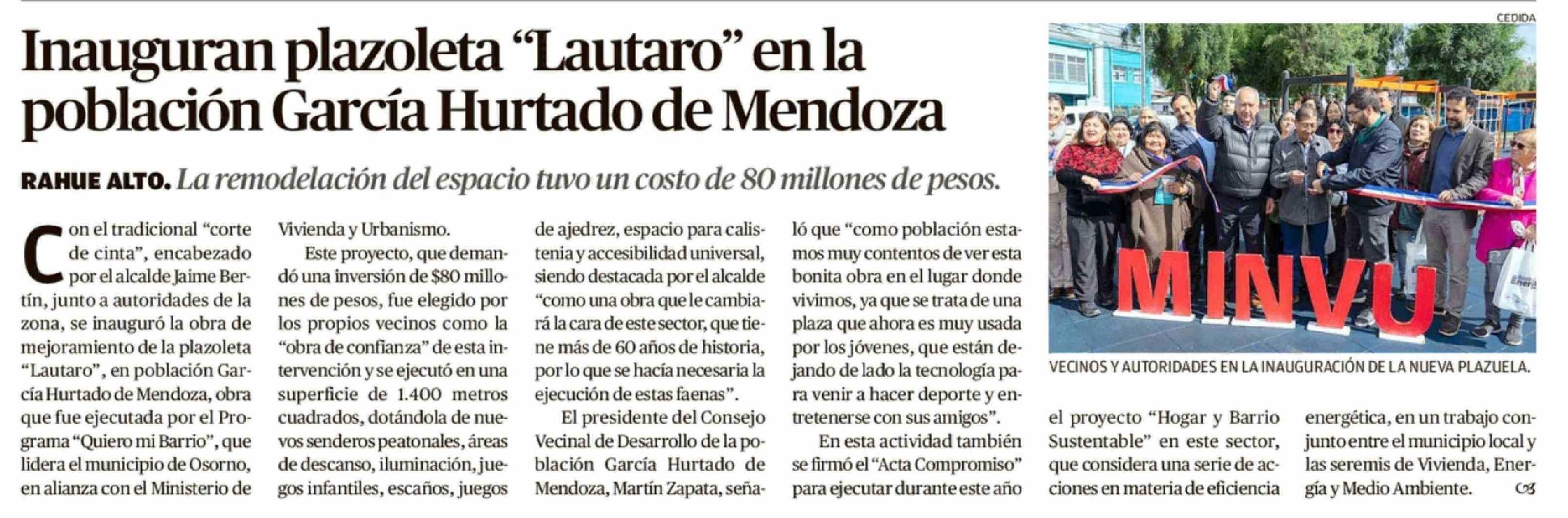 Inauguran plazoleta "Lautaro" en la población García Hurtado de Mendoza
