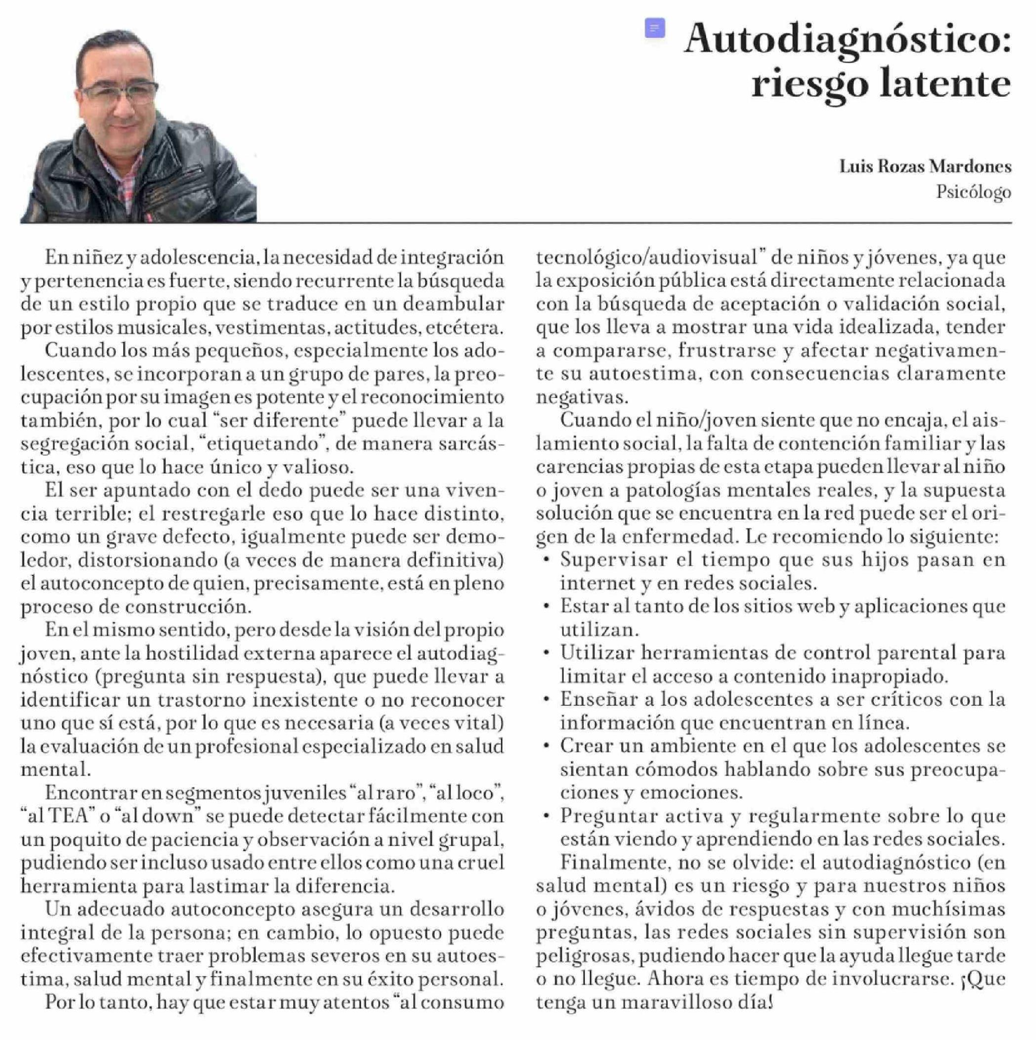 Columnas de Opinión: Autodiagnóstico: riesgo latente