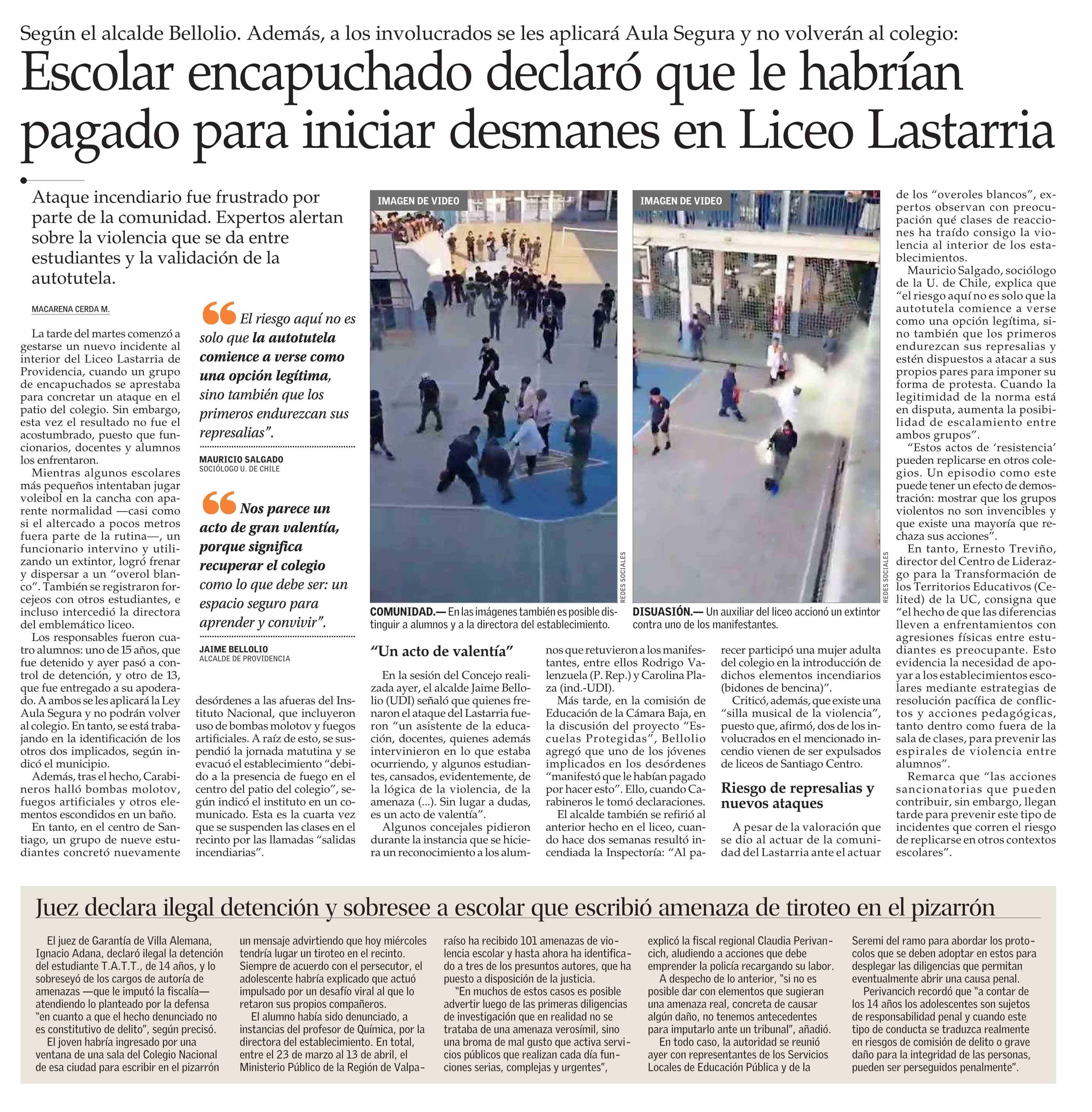 Escolar encapuchado declaró que le habrían pagado para iniciar desmanes en Liceo Lastarria