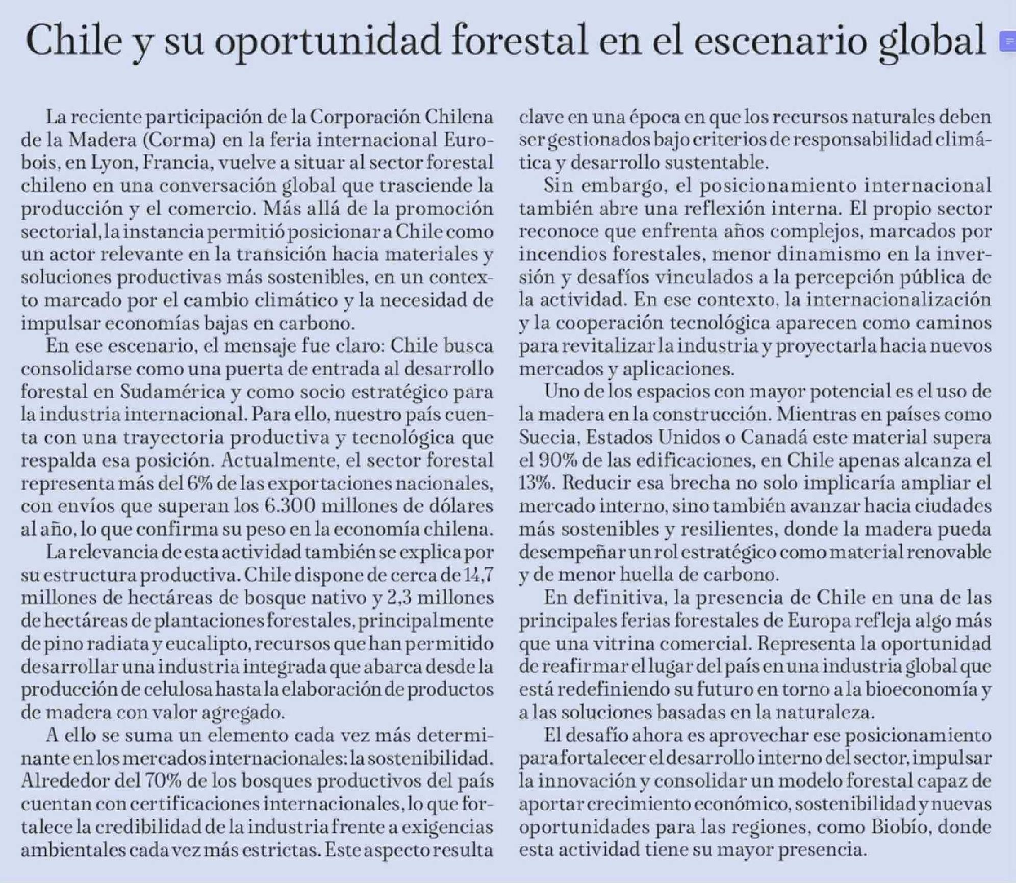 Título: Editorial: Chile y su oportunidad forestal en el escenario global