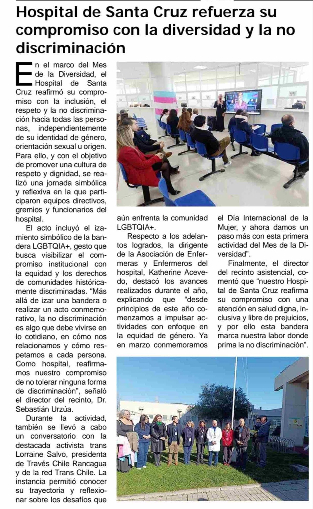 Hospital de Santa Cruz refuerza su compromiso con la diversidad y la no discriminación