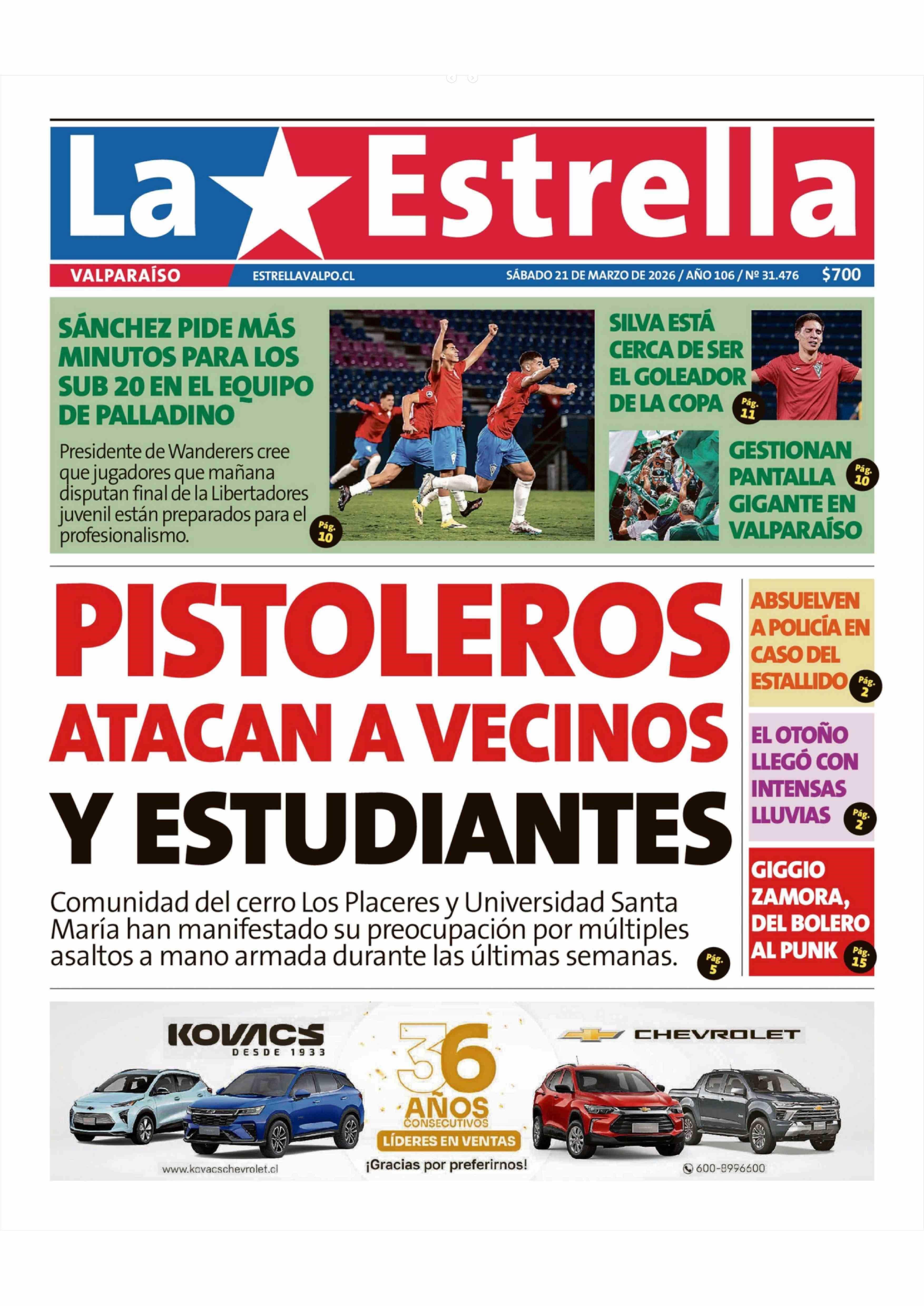 PORTADA LA ESTRELLA DE VALPARAÍSO CHILE
