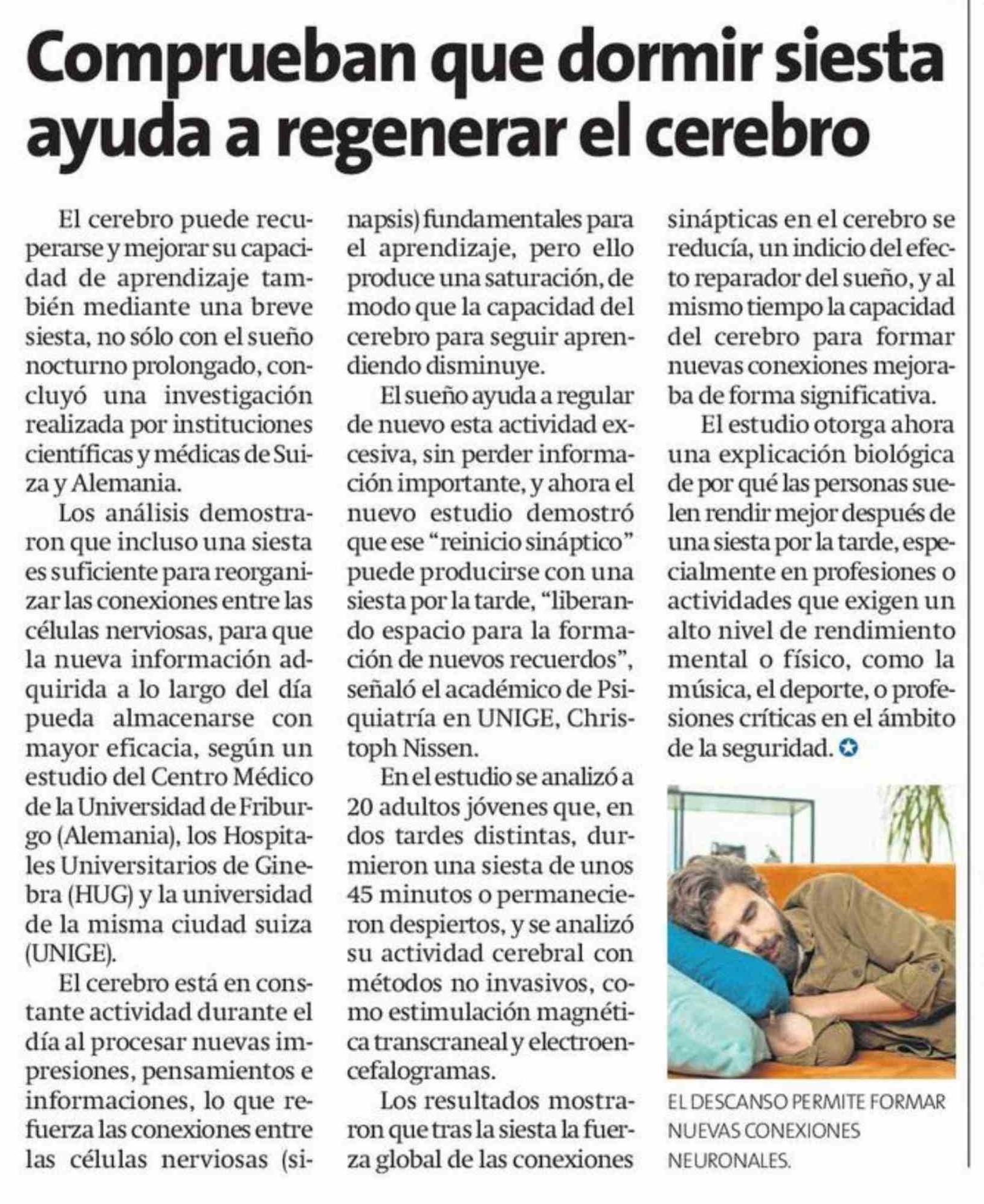 Comprueban que dormir siesta ayuda a regenerar el cerebro