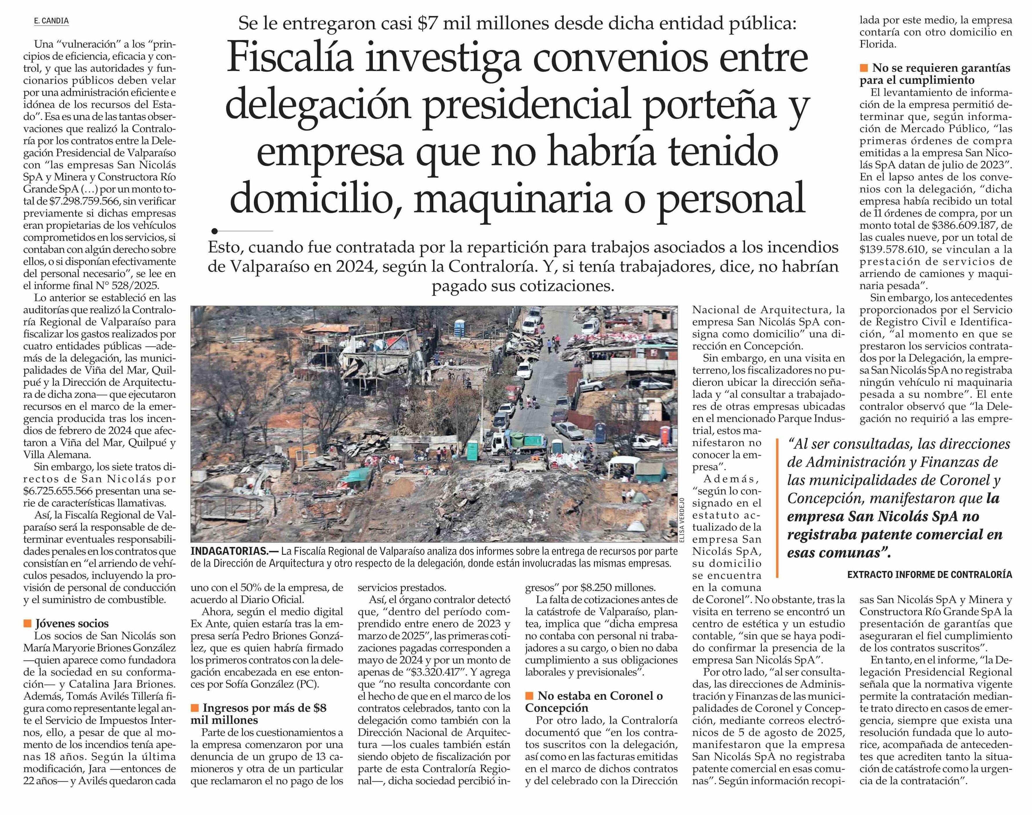 Fiscalía investiga convenios entre delegación presidencial porteña y empresa que no habría tenido domicilio, maquinaria o personal