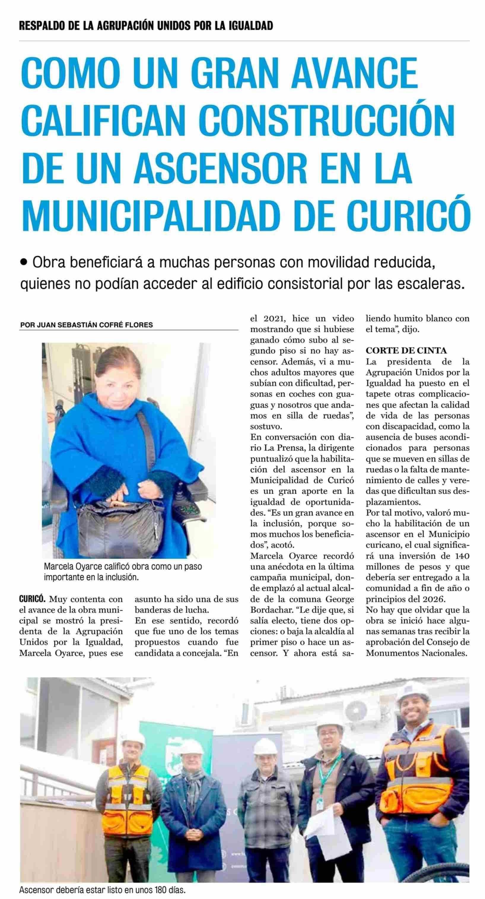 COMO UN GRAN AVANCE CALIFICAN CONSTRUCCIÓN DE UN ASGENSOR EN LA MUNICIPALIDAD DE CURICÓ