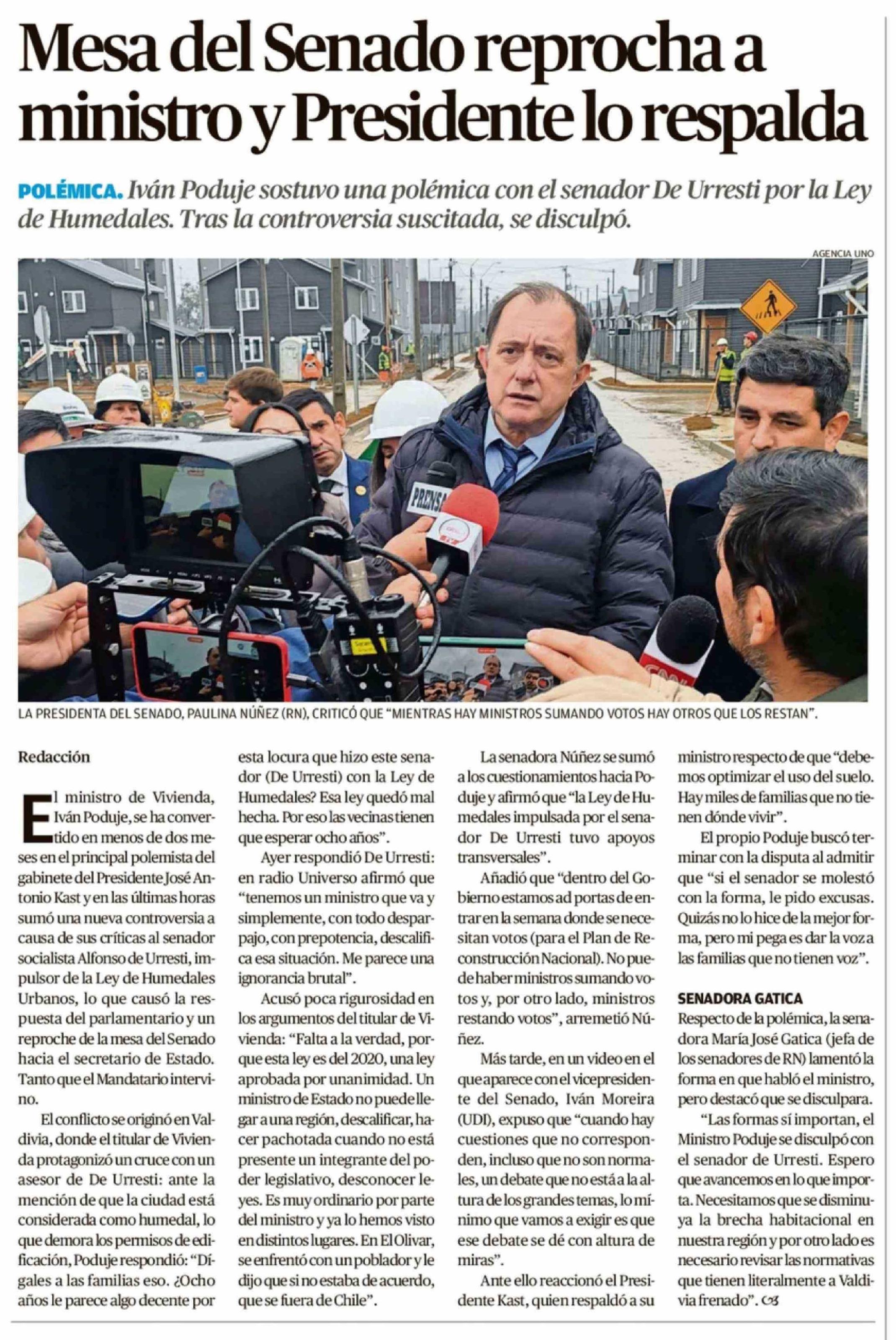 Mesa del Senado reprocha a ministro y Presidente lo respalda