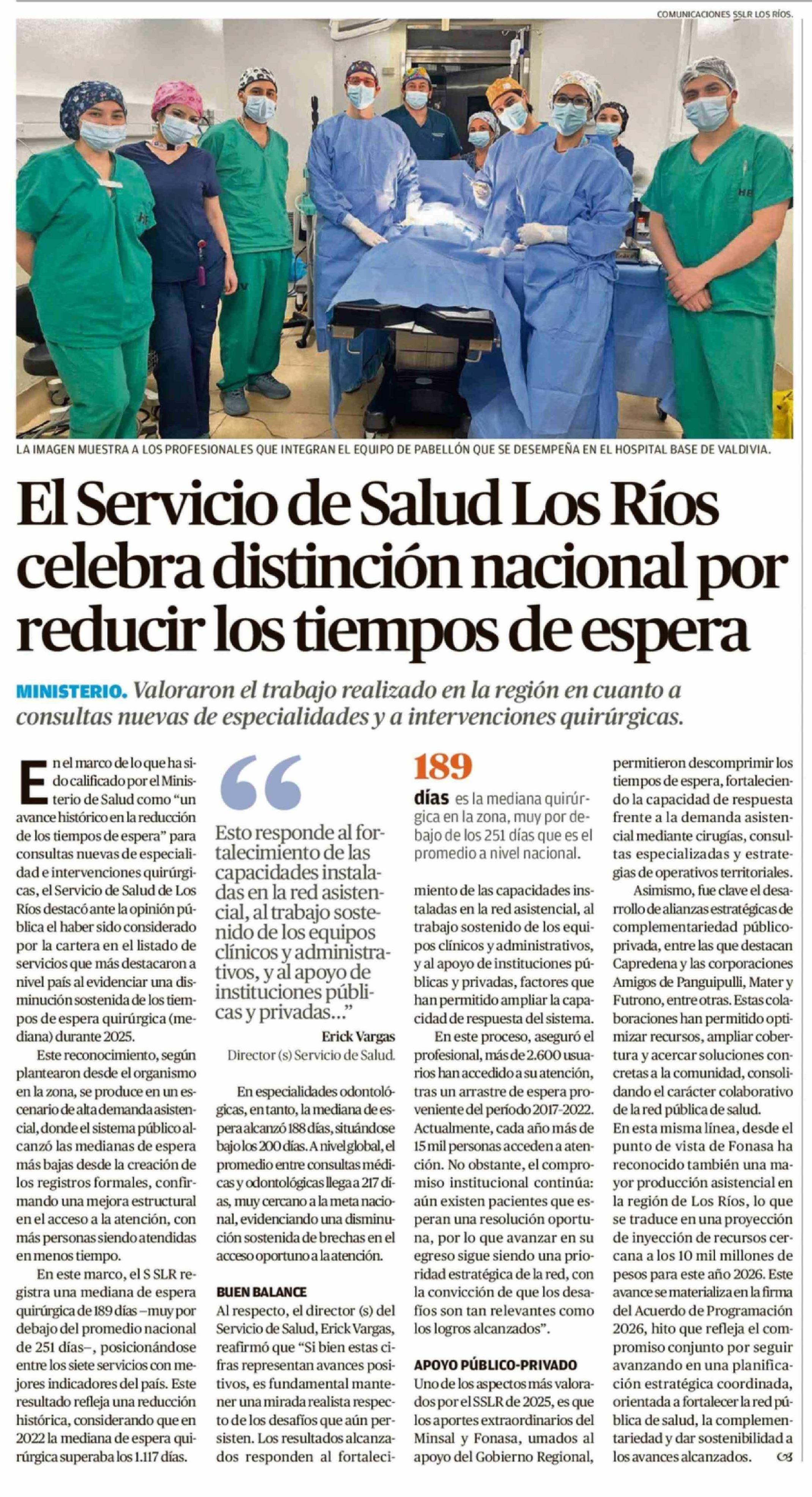 El Servicio de Salud Los Ríos celebra distinción nacional por reducir los tiempos de espera