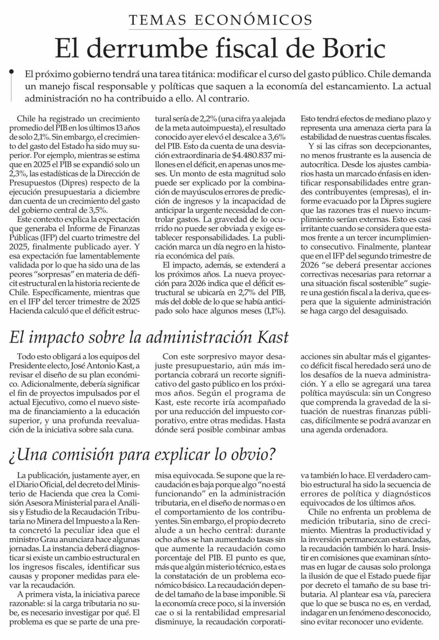 El derrumbe fiscal de Boric