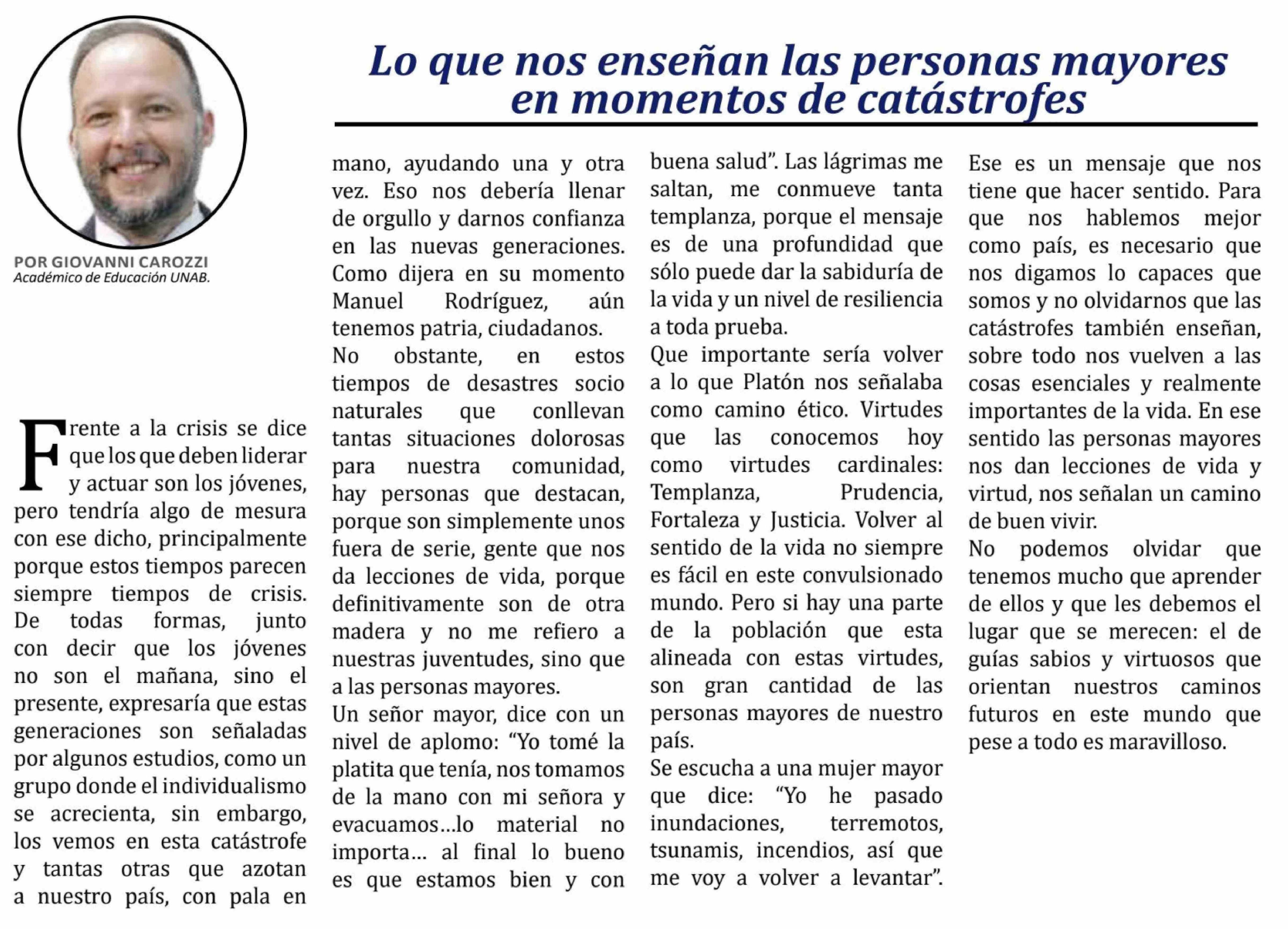 Columnas de Opinión: Lo que nos enseñan las personas mayores en momentos de catástrofes