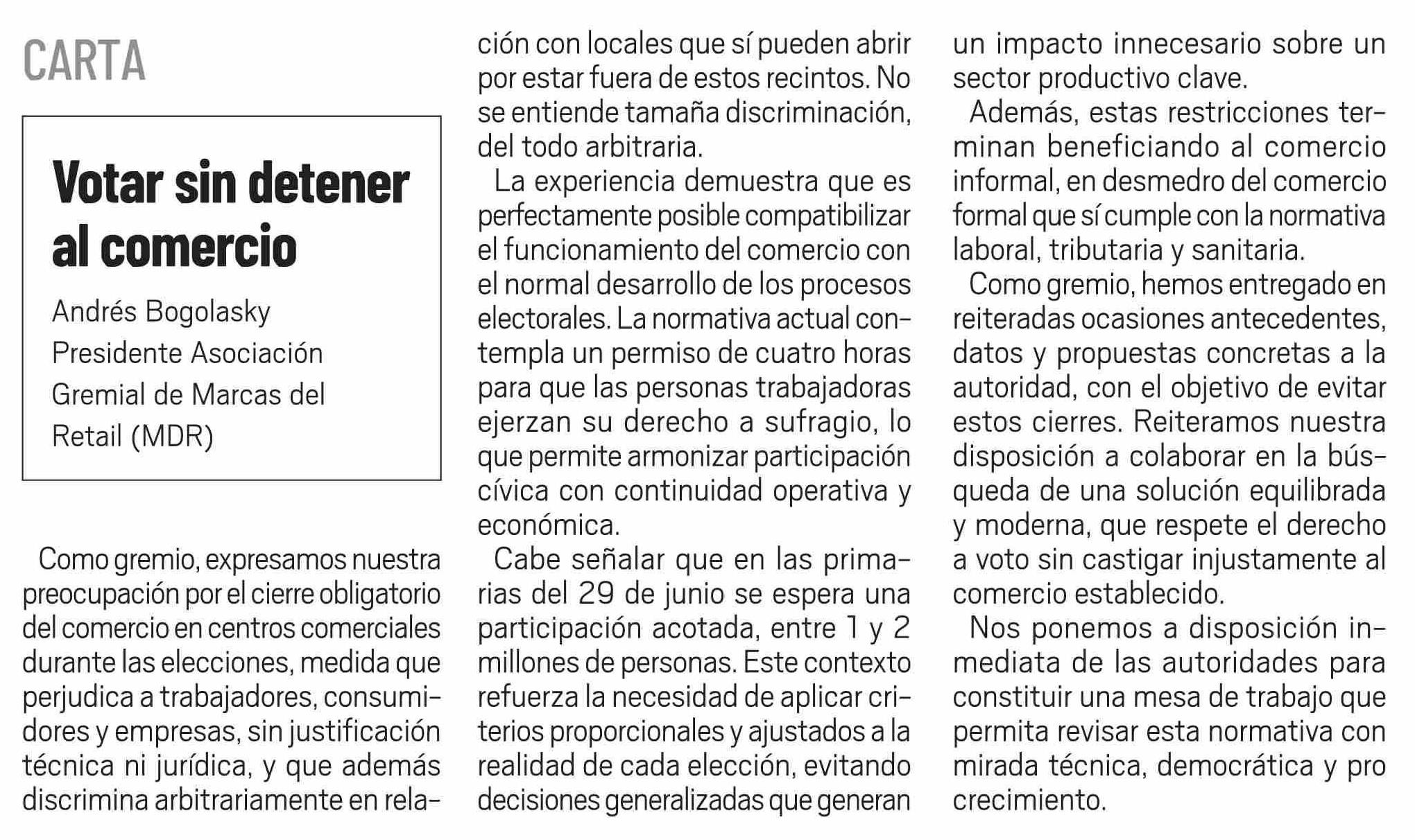 Cartas: Votar sin detener al comercio