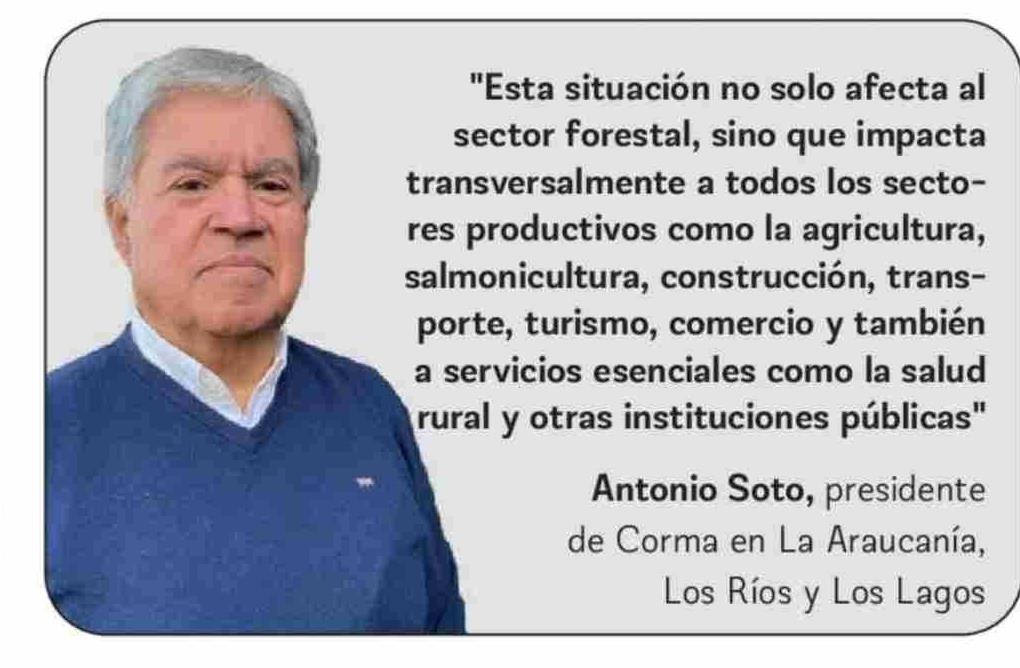 | Título: | "Esta situación no solo afecta al sector forestal, sino que impacta transversalmente a todos los sectores productivos como la agricultura, salmonicultura, construcción, transporte, turismo, comercio y también a servicios esenciales como la salud rural y otras instituciones públicas" Antonio Soto, pr |