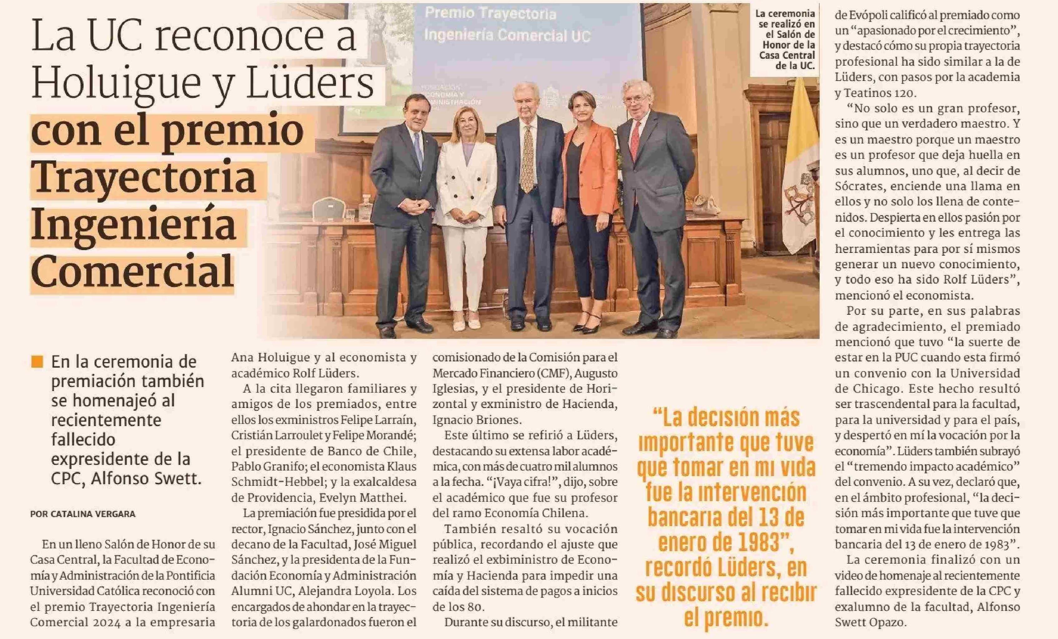 La UC reconoce a Holuigue y Lüders con el premio Trayectoria Ingeniería Comercial