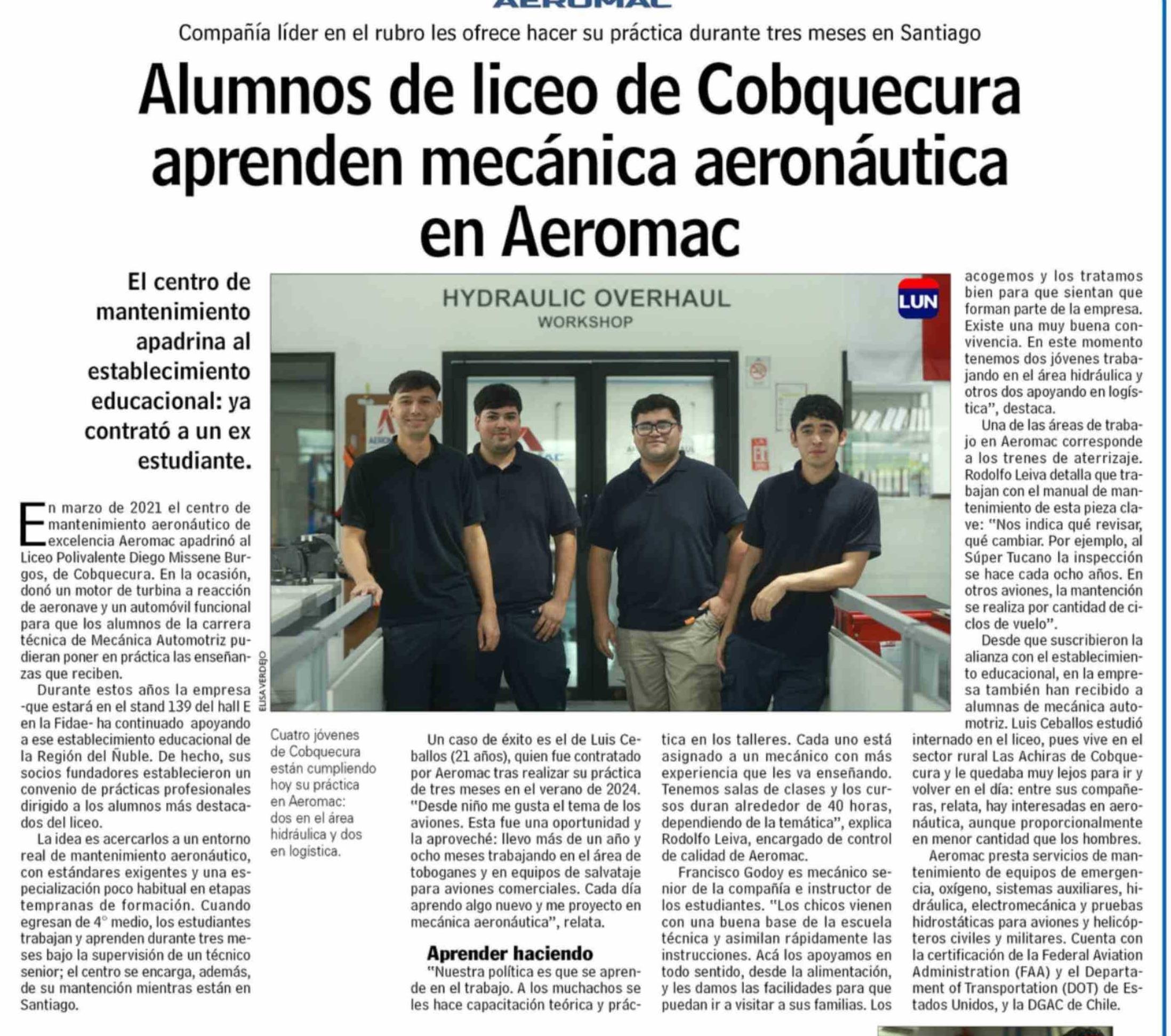 Alumnos de liceo de Cobquecura aprenden mecánica aeronáutica en Aeromac