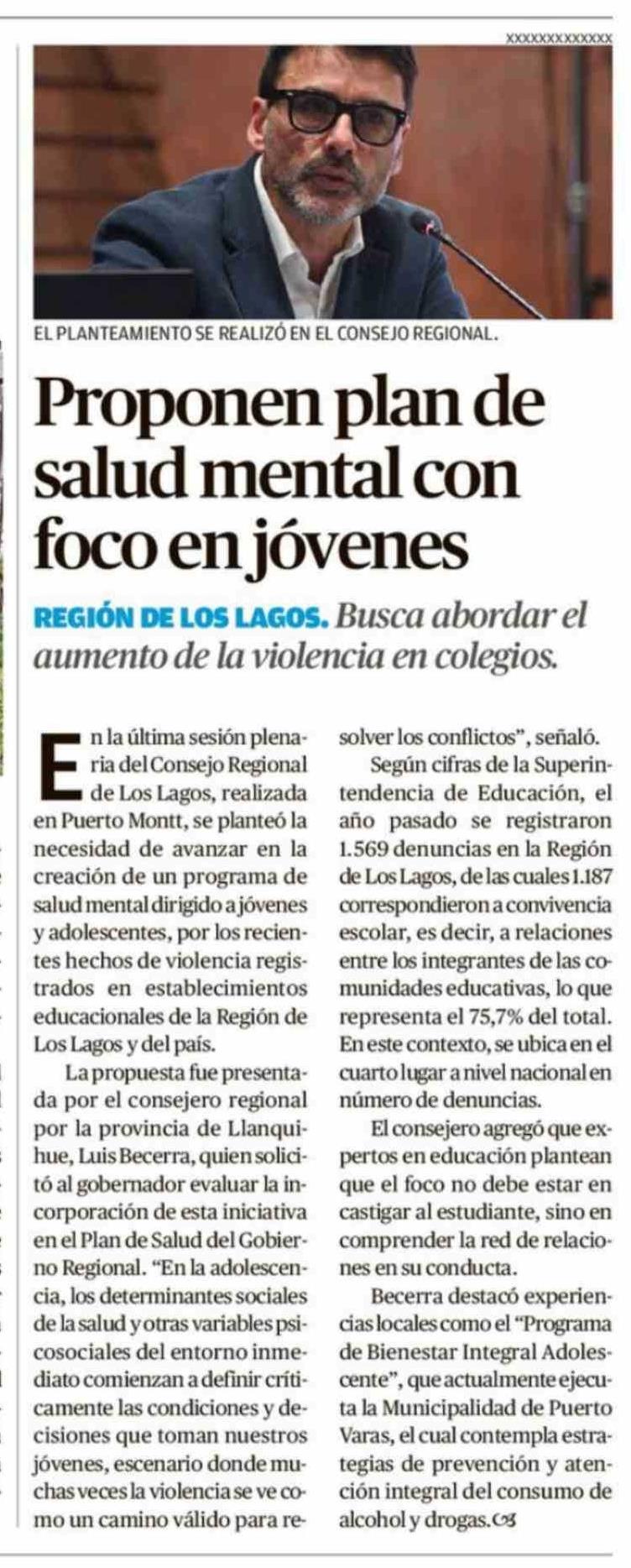 Título: Proponen plan de salud mental con foco en jóvenes