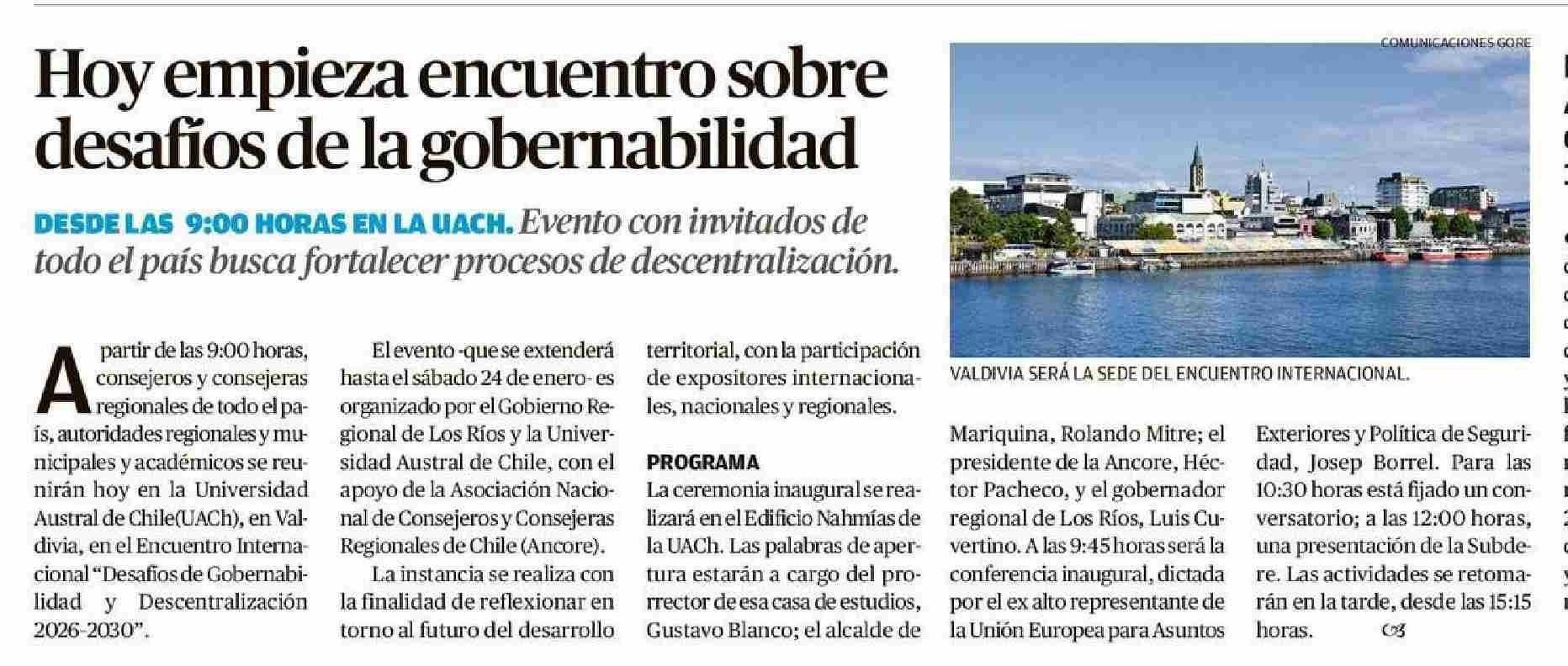 Hoy empieza encuentro sobre desafíos de la gobernabilidad