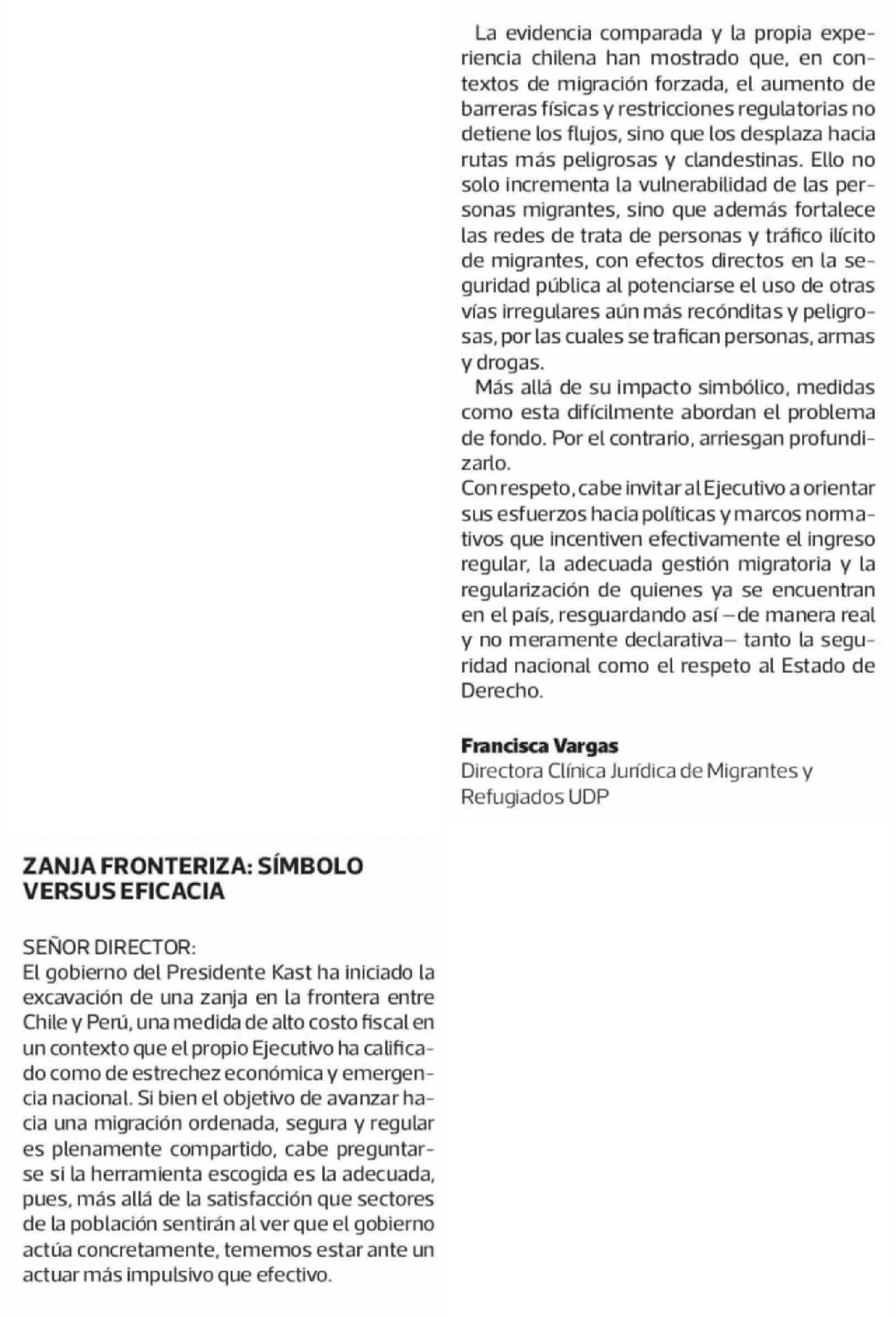 Cartas: ZANJA FRONTERIZA: SÍMBOLO VERSUS EFICACIA