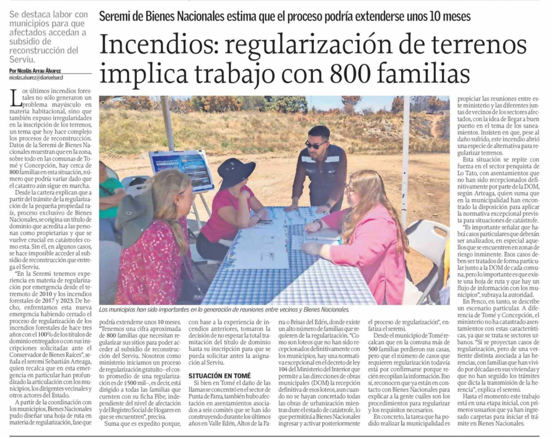 Incendios: regularización de terrenos implica trabajo con 800 familias