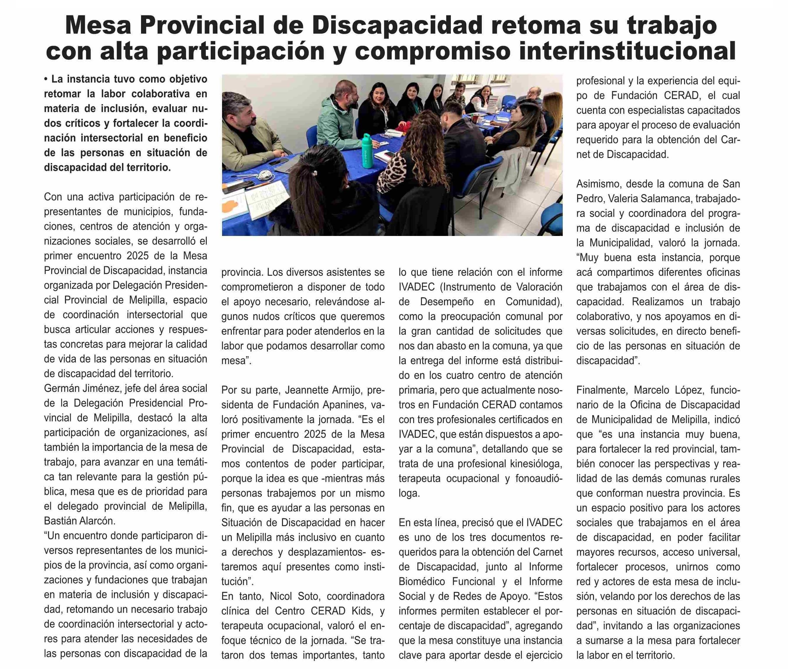 Mesa Provincial de Discapacidad retorna su trabajo con alta participación y compromiso interinstitucional
